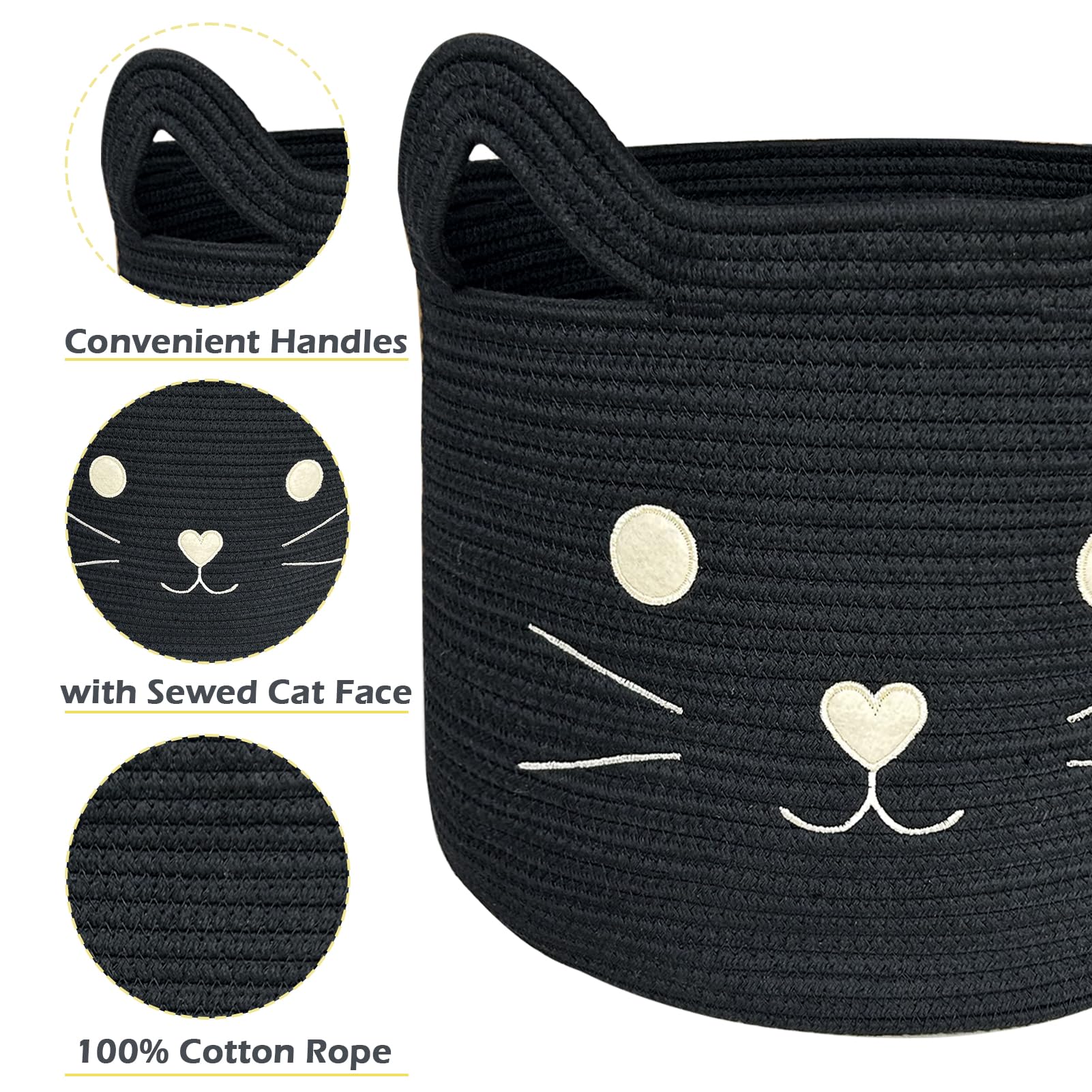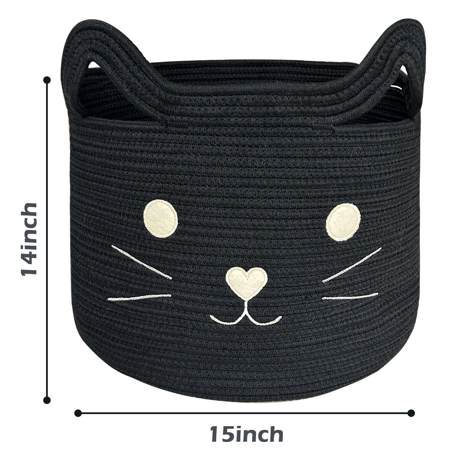 💟Perfect Dimensions and Design: 15" L x 14"H. Cute cat face design with excellent workmanship, makes the cat large toy basket adds sweet flair to your home. Neutral color and cute cat face design of the cat toy box is delicate and lovely, which can be a good decoration of your space. You can use the special cat ear handles also with two invisible handles at the side, very easy to carry.