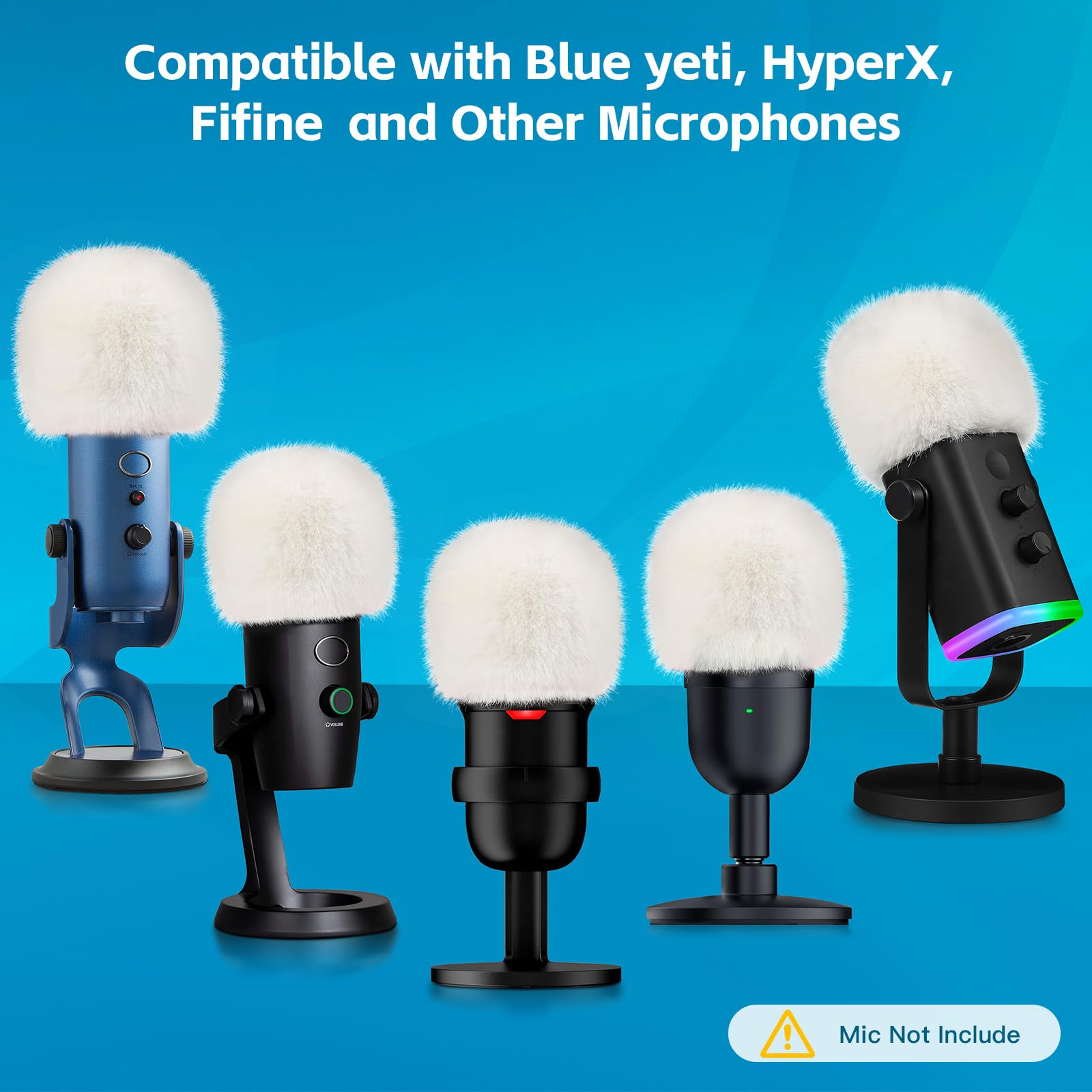 【Broad Compatibility】Our furry microphone foam cover is custom-made to seamlessly fit Blue Yeti, Blue Yeti Nano, Blue Yeti Pro, ZealSound K66, A8M, SoloCast, Razer Seiren Mini, Seiren V2 Pro, and other mic heads with precise dimensions of up to 2.48 inches in height and 2.36 inches in diameter, ensuring a perfect match with the Blue Yeti microphone head. Additionally, its effective elasticity allows it to stretch and conform snugly to various microphone shapes and sizes, ensuring a secure fit that remains in place during use.
