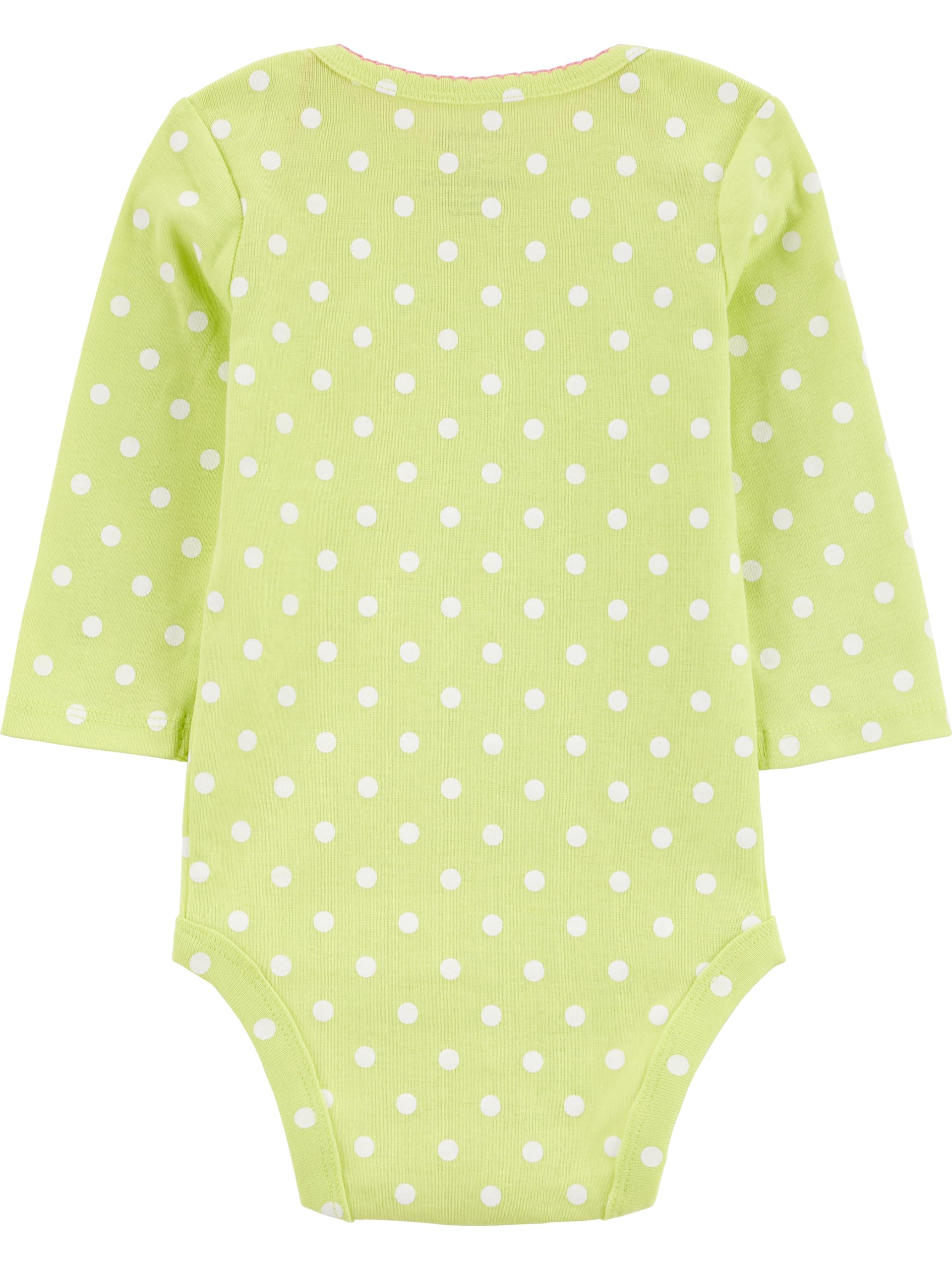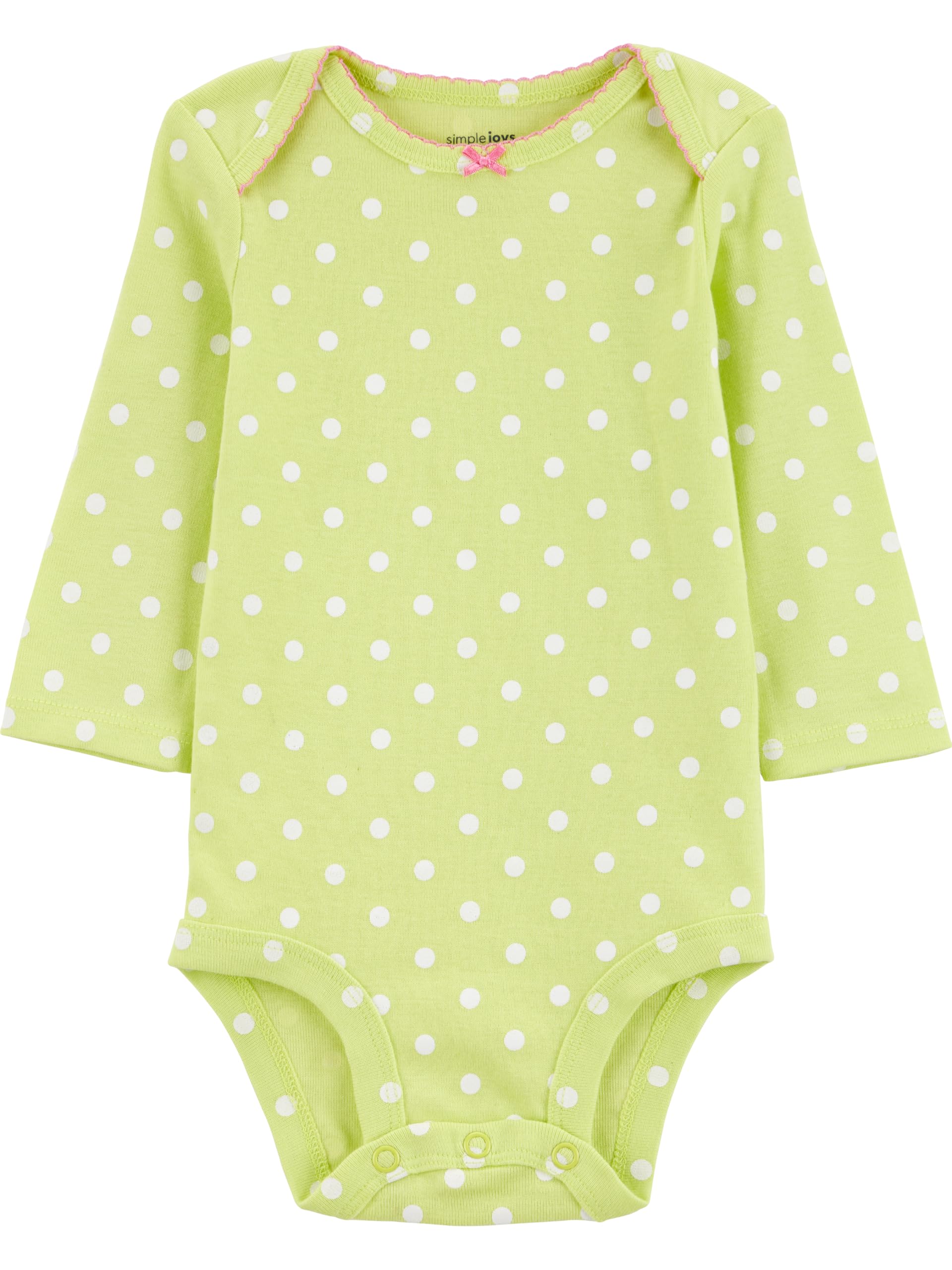 Description An Amazon Brand - Five long-sleeve bodysuits in baby-soft cotton featuring nickel-free snaps at reinforced panels.