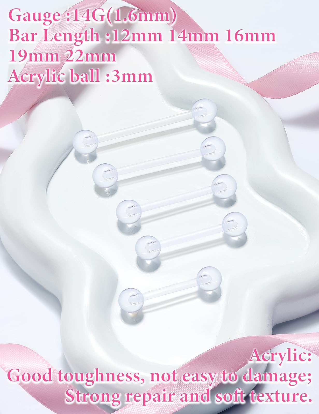 tongue rings Size: 14G (1.6MM); Wearable Length: 12MM 14MM 16MM 18MM 22MM; Ball Size: 5MM .5 Sizes Give You a Better Choice,Flexible coping.