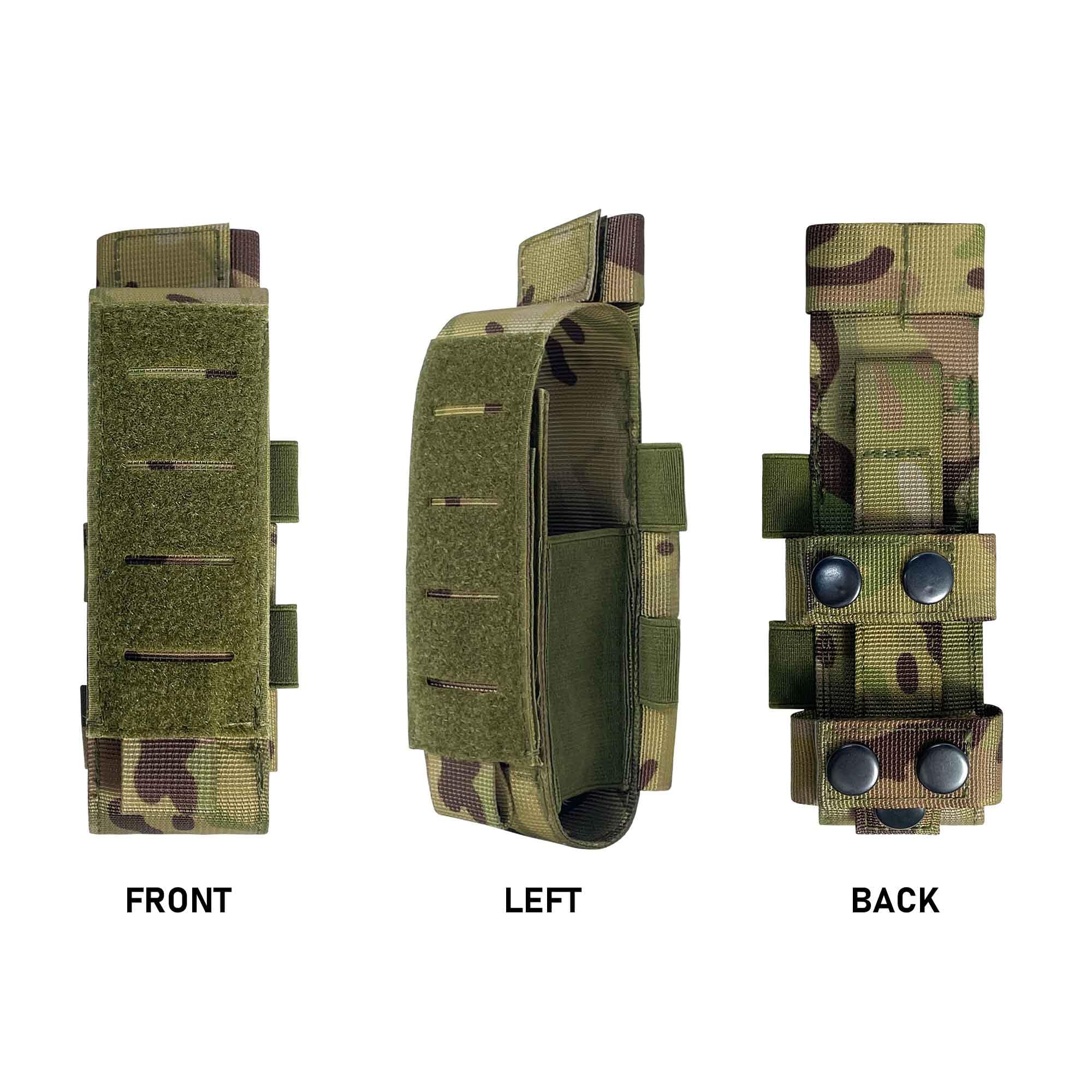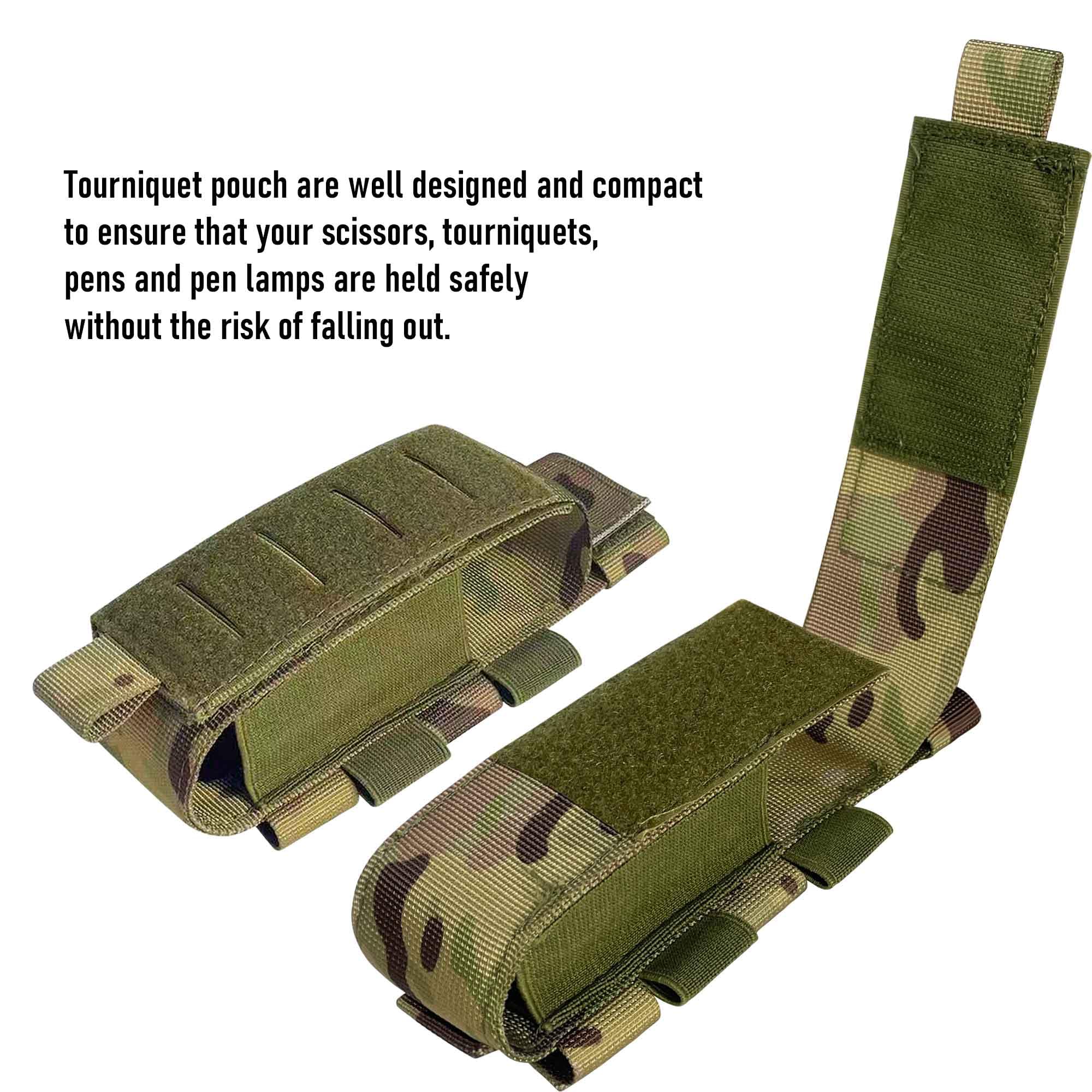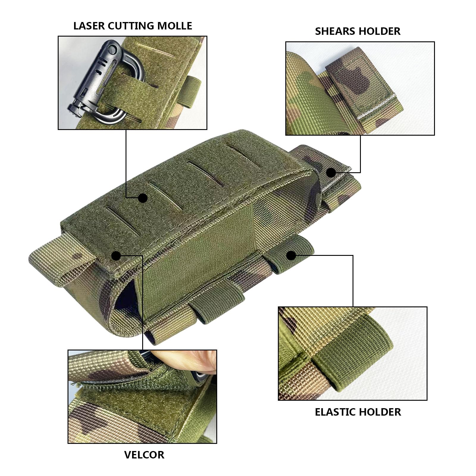 Upgrade Laser Cut Design: The molle tourniquet pouch designed with laser cut hook and loop flap, the large main compartment perfect size for tourniquet or flashlight.Top of the pouch designed with a shears holder. it's easy to get it when you need.Side of the pouch with two elastic strap loop fits for a pen. It idea for daily use or record the time when tourniquet was used. The MOLLE strap has a strong snap to attach tourniquet pouch to any molle compatible device.
