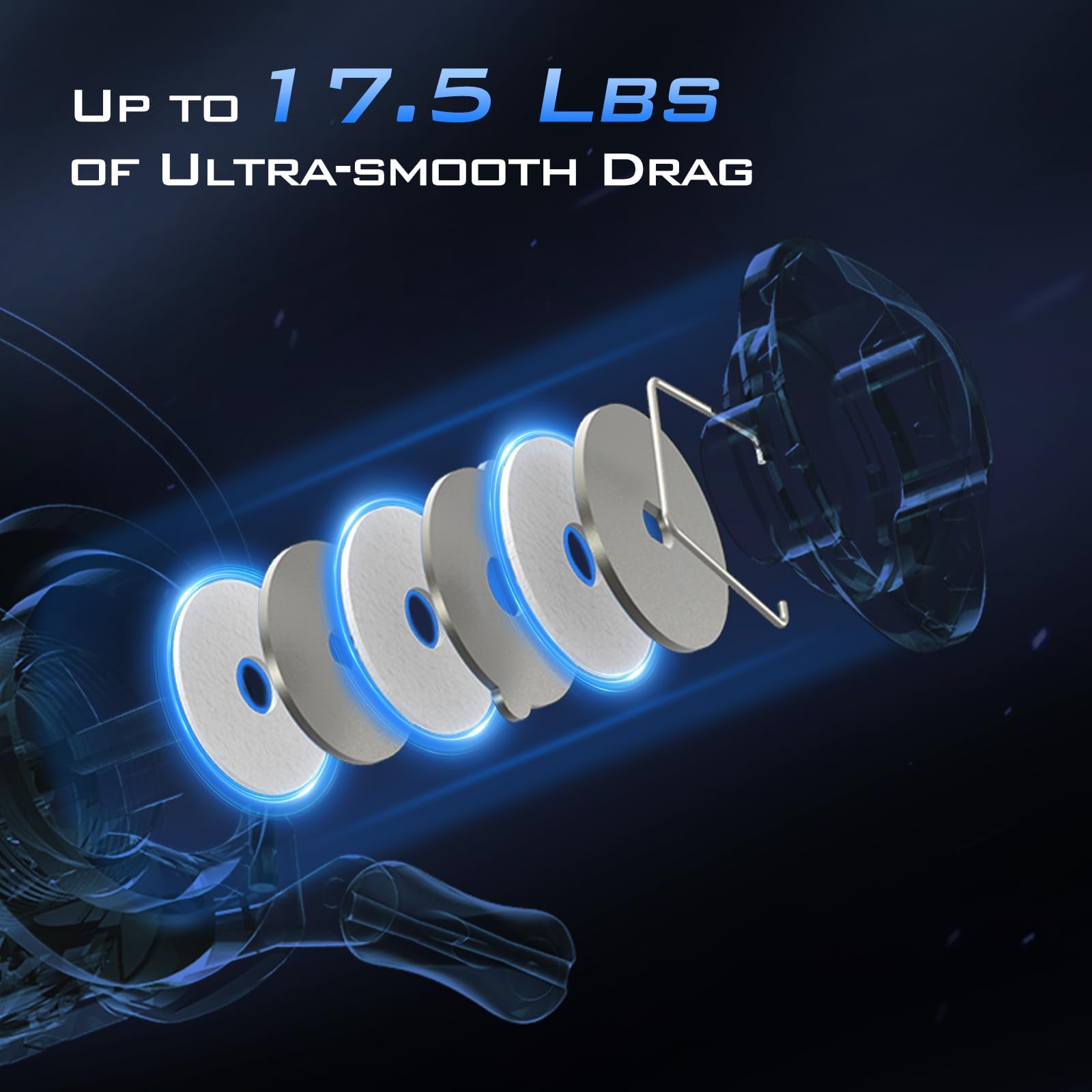 Ultra Smooth Powerful - KastKing Centron spinning reel's Superior Drag System offers incredible stopping power up to 17.5LBs. Centron series spinning reel has a lighter and stronger CNC machined aluminum spool with a more even line lay, and internal grooves for lube retention.