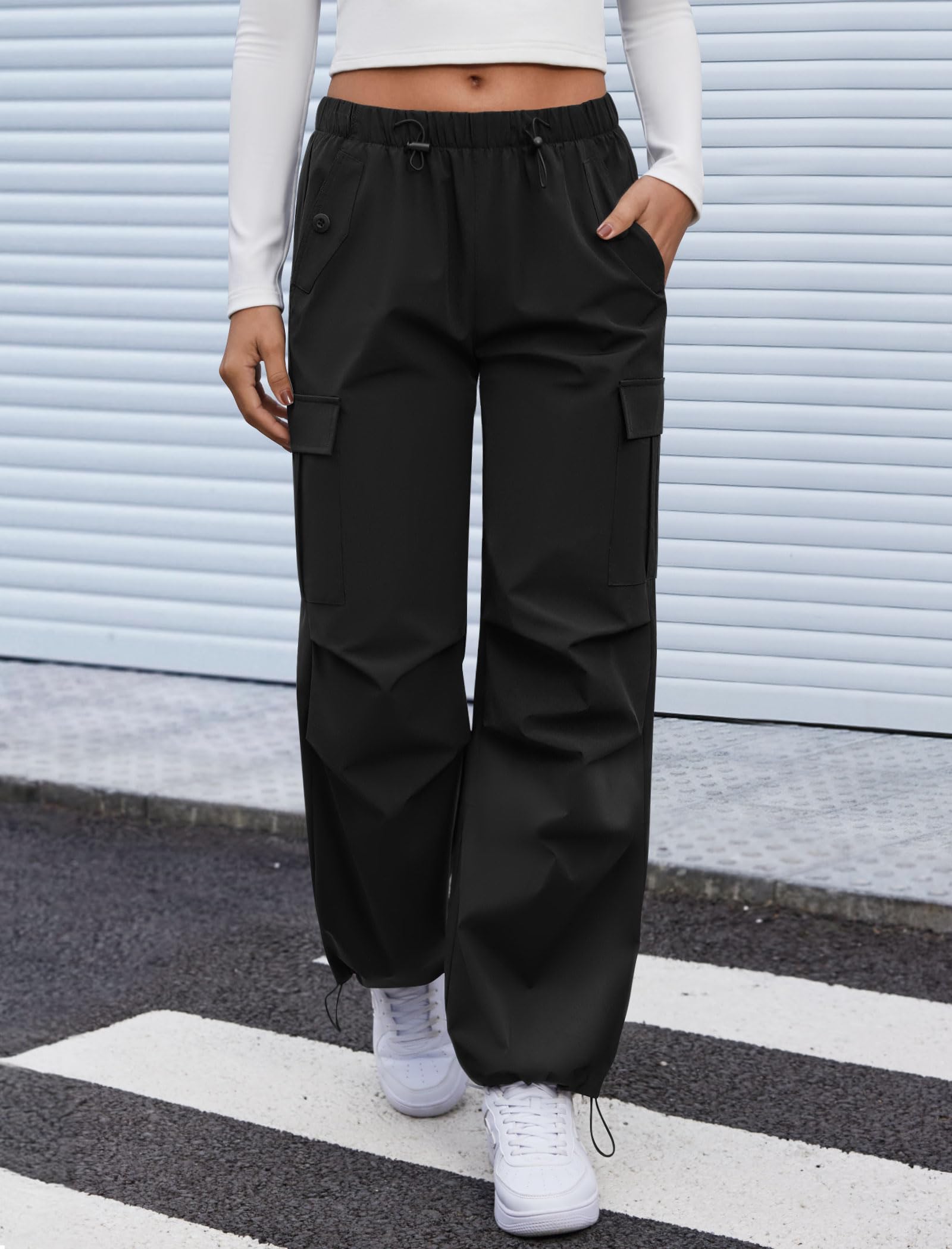 ADJUSTABLE WAISTBAND & BOTTOMS: Featuring an adjustable waistband and cuffs, these mid-waisted parachute pants provide a customizable fit that ensures both comfort and style. Whether you're trekking uphill or relaxing by the campfire, they move with you