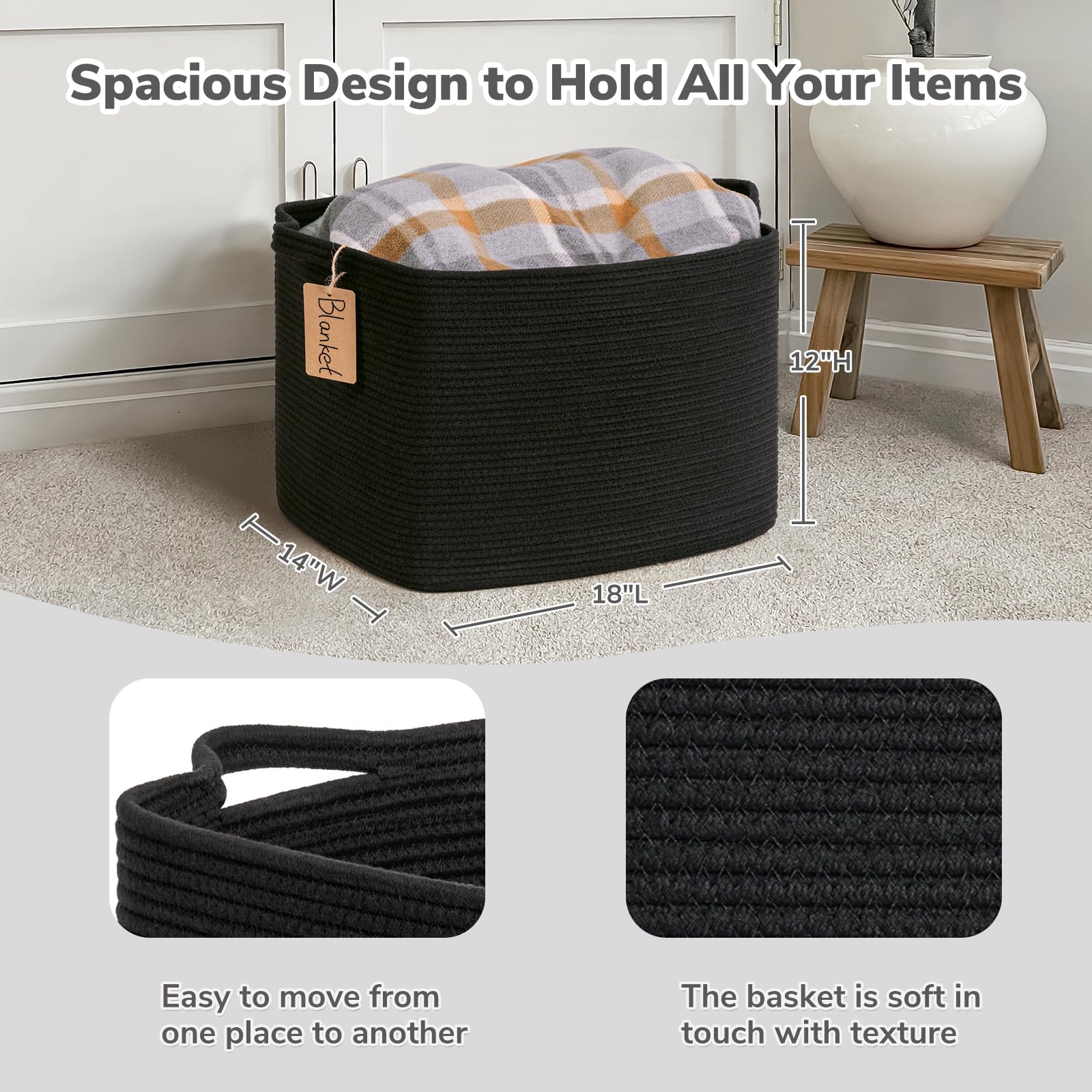 Multifunctional Woven Basket: Measuring 18 x 14 x 12 inches, this basket offers generous storage space. It's both safe and stylish, perfect for organizing everyday items like blankets, toys, or office supplies on shelves, keeping your living space tidy