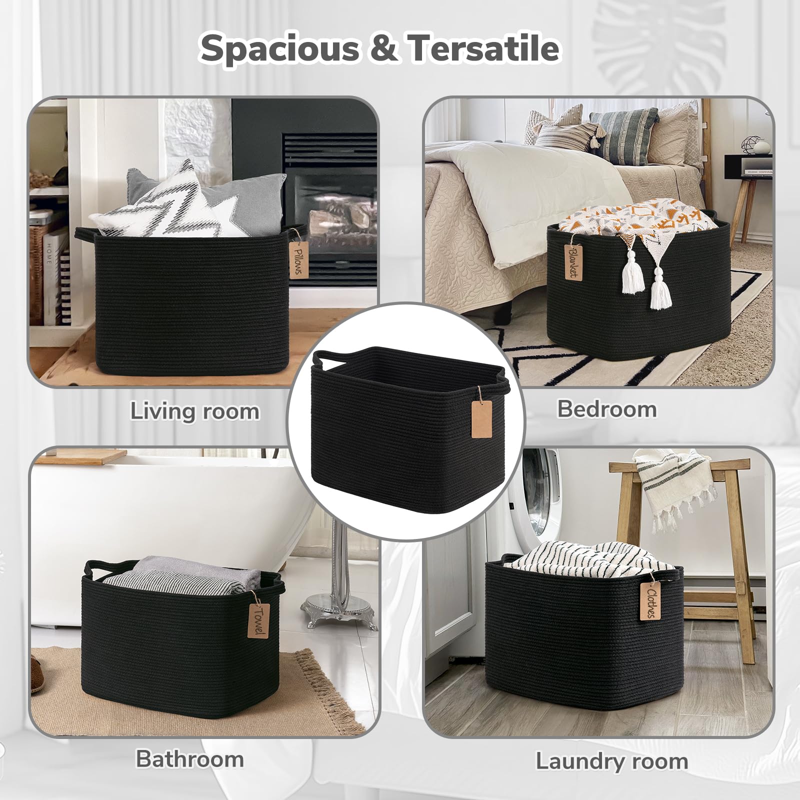 Rope Storage Basket: Equipped with labels! When you write words on the label, such as laundry supplies, toys, towels, etc. Even if this storage basket is placed high, you will immediately know what you are storing