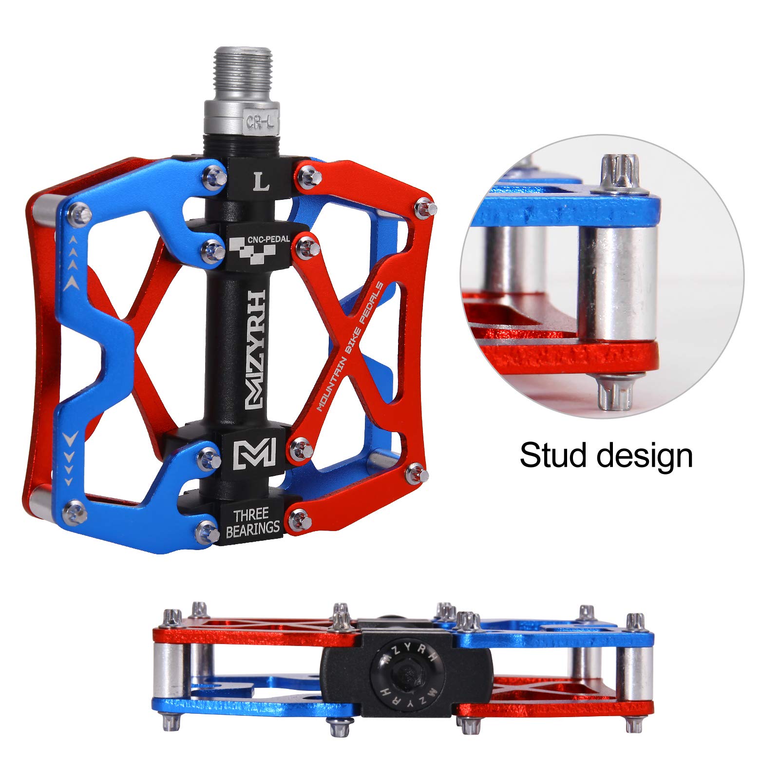 Good pedals grips:Aluminum ANTI-SKID nails for efficiency pedaling.Easy installation: L for left pedal; R for right pedal