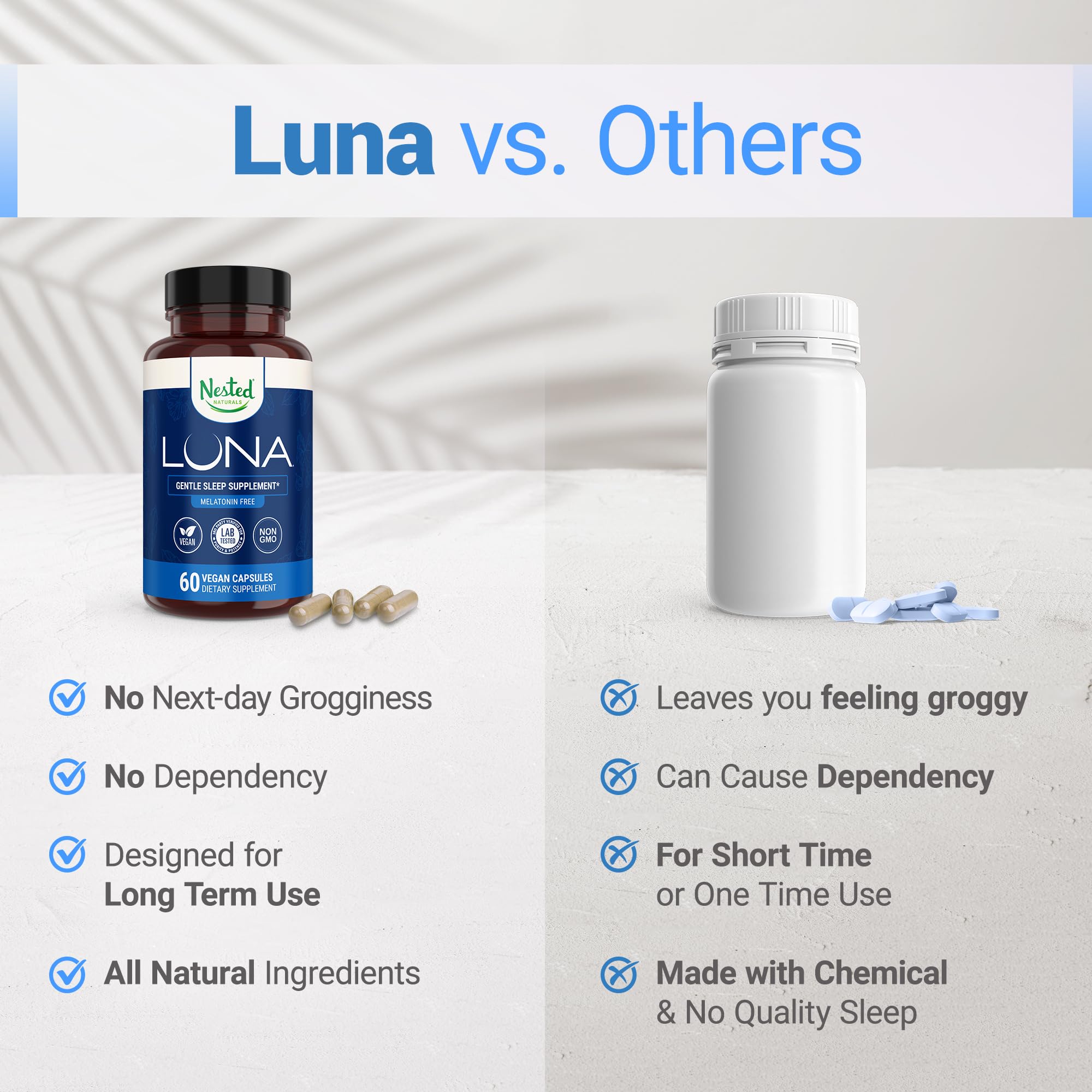 Natural Sleep Ingredients: Luna Melatonin-Free features a combination of ingredients known for their sleep-enhancing properties. Each ingredient is carefully selected to work in harmony, providing a comprehensive sleep aid solution.
