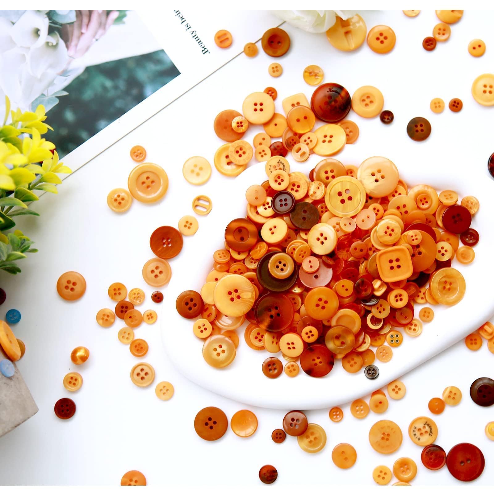 Package:The wight about 165g, 350-400 pieces. This pack includes resin buttons of 2 holes and 4 holes.