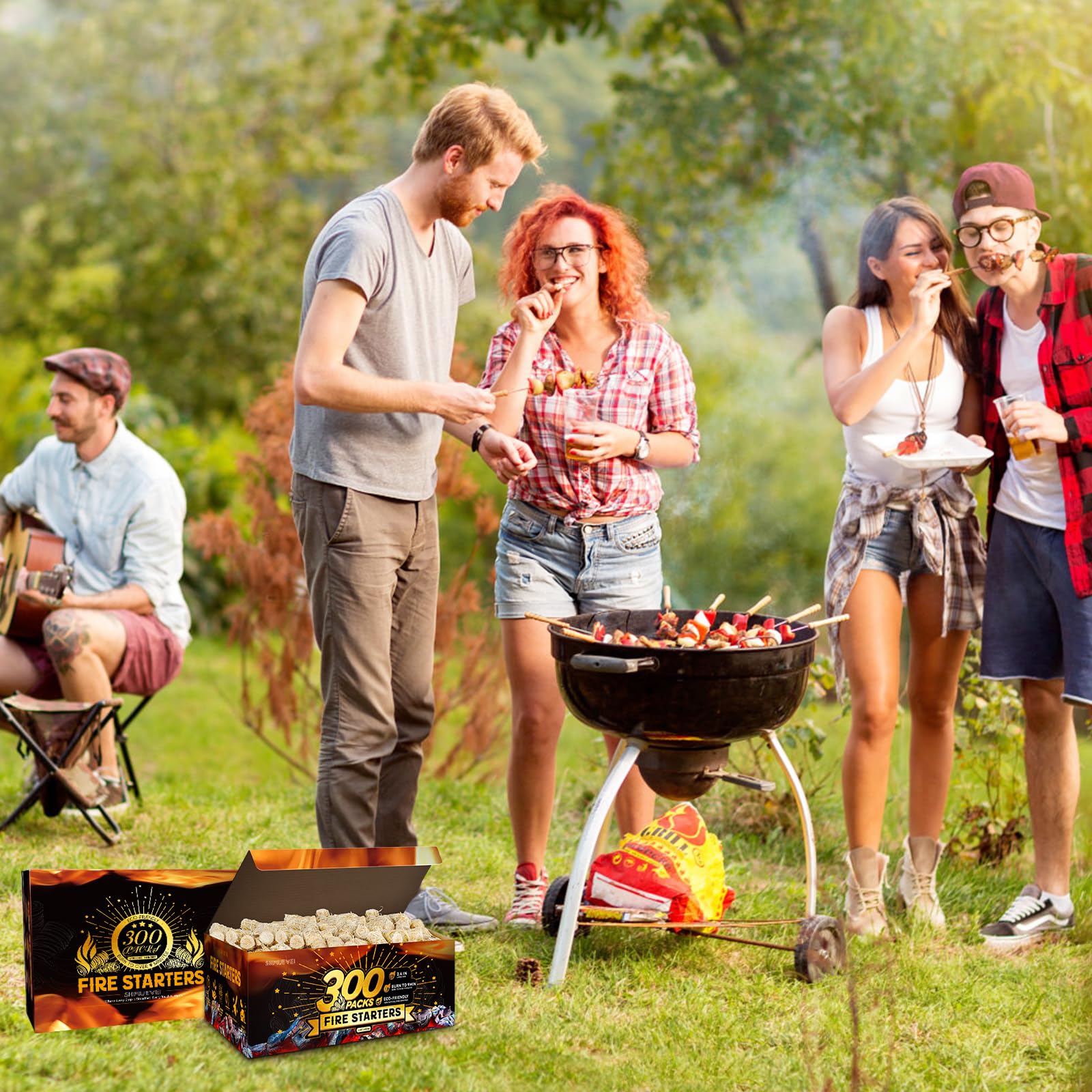 [Long Burn Time]: Fire starter cubes burn up to 10 minutes, which is great for firing up charcoal and big firewood pieces. just one piece is enough to light a fire even in windy weather. They're perfect as a grill, fireplace, and camping fire starter.