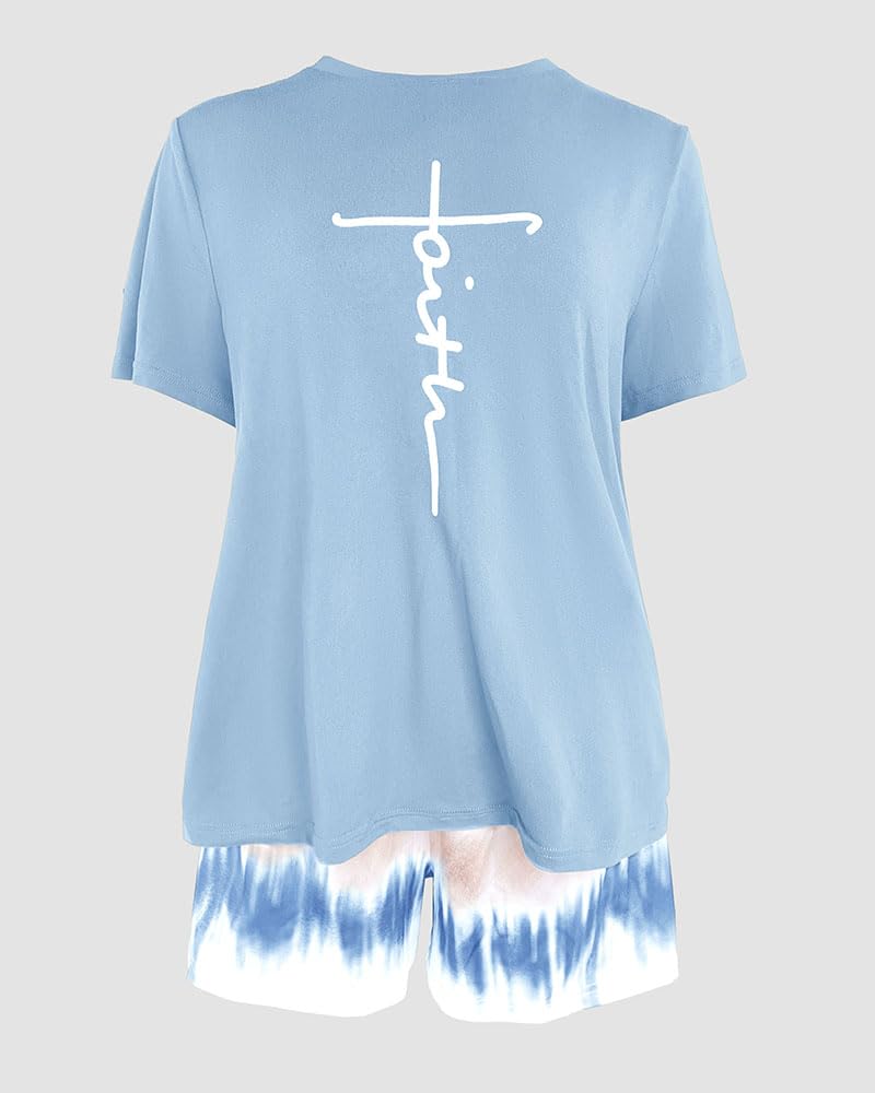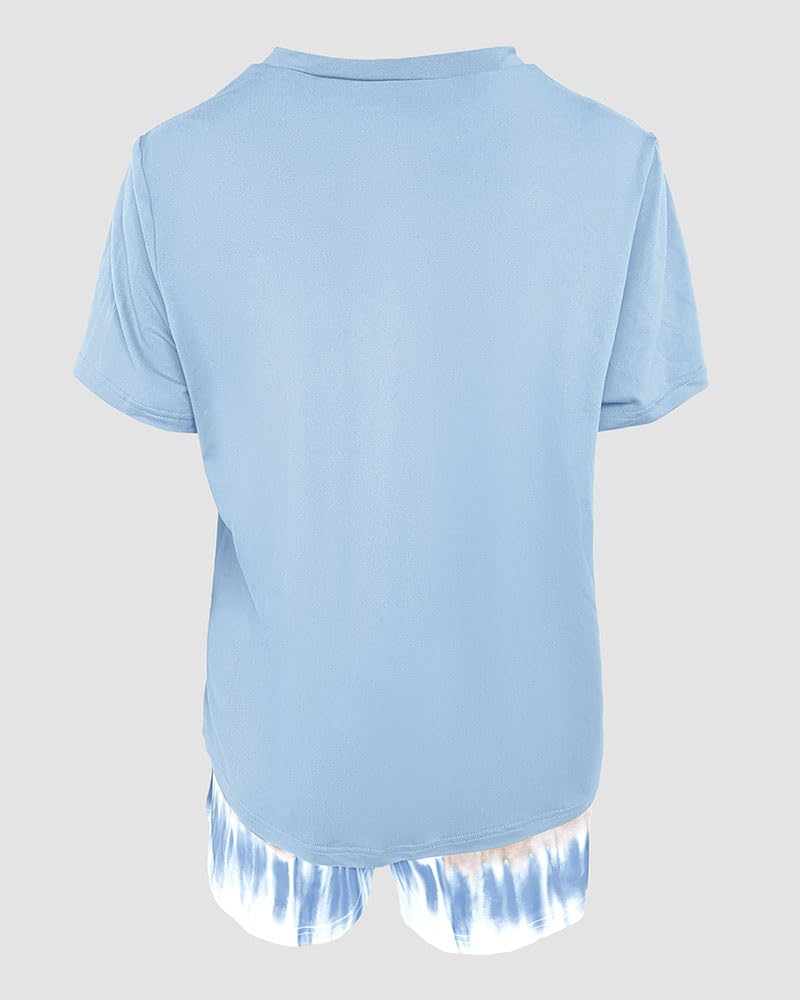 2 Piece Pajama Set: This comfy pajamas with short sleeve tops and shorts has a loose fit, combining comfort with casual style for everyday relaxation
