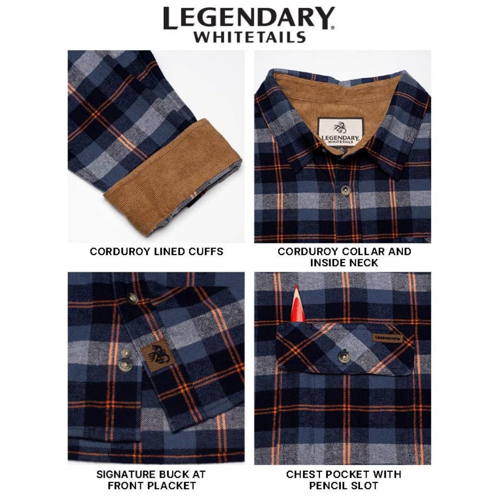 Description Our original single pocket flannel - The Buck Camp Flannel Shirt is the perfect weight to wear alone or layered over a t-shirt or under a shirt jacket. The traditional style and signature corduroy details offer unmatched durability, while the relaxed fit and brushed cotton flannel provide ultimate comfort. With multiple exclusive plaids and solids, they're suitable for any occasion from the woods to the office. The Buck Camp Flannel Shirt gives you an incredible "bang for your buck"! Big & Tall sizes are designed for men over 6'2" and add 2" in body length and 1-1⁄2" in sleeve length.