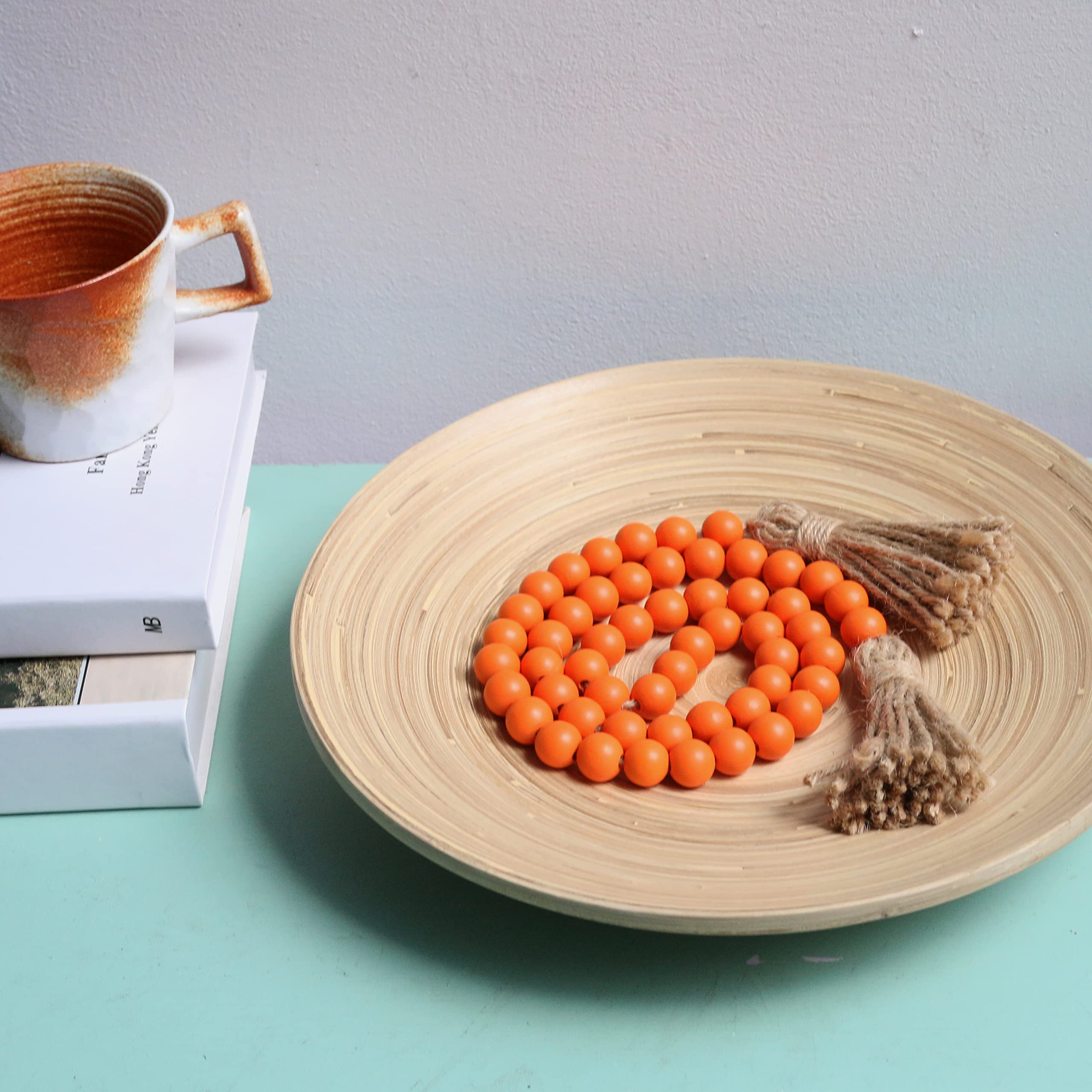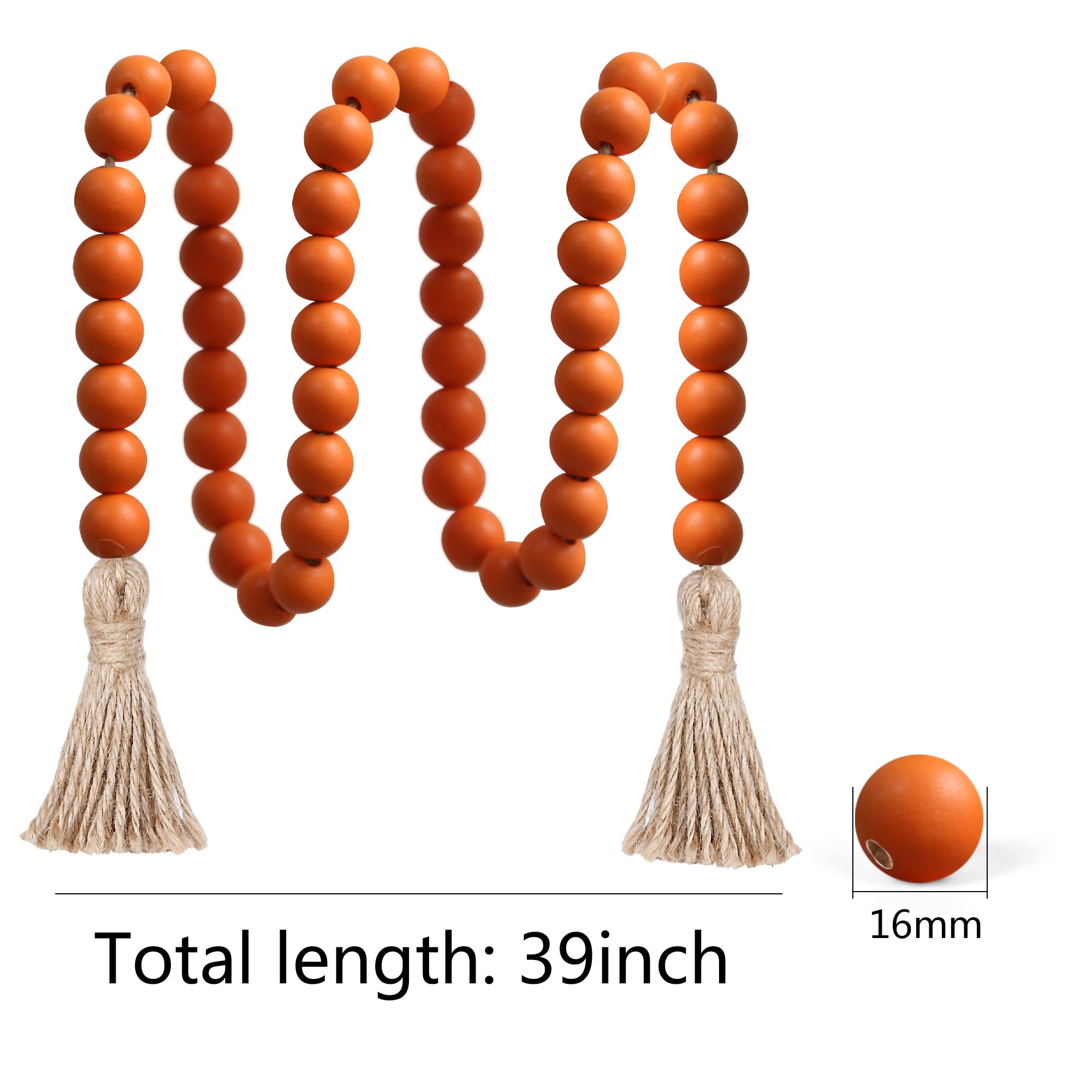 Dimensions: The orange wood bead garland total length is 100cm/39inch,bead diameter is 16mm/0.62inch.Please allow slight errors on size.