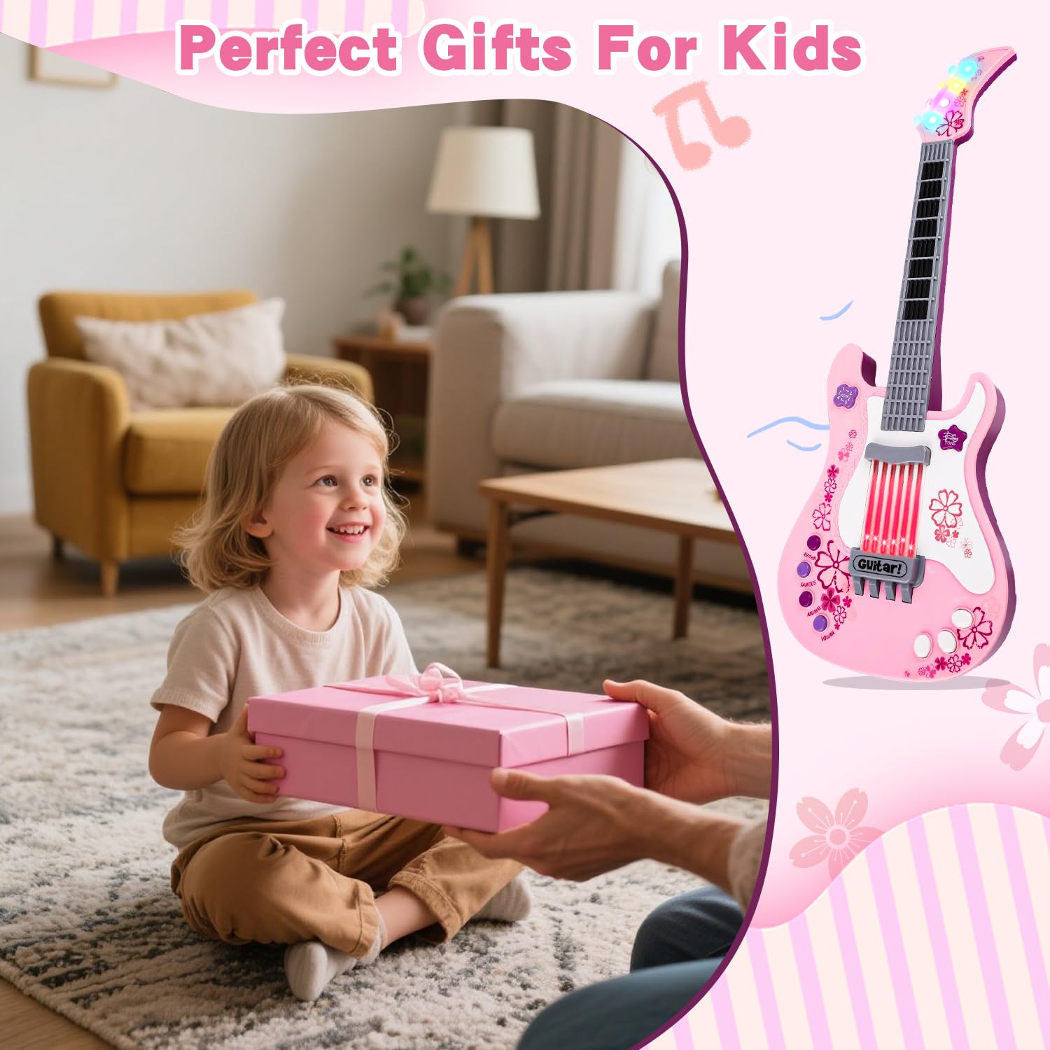 🎁 The Ultimate Gift They'll Adore: With its charming pink color and easy-to-carry strap, this girl guitar is the dream gift for birthdays or festival. It encourages imaginative play and makes children feel like real musicians.