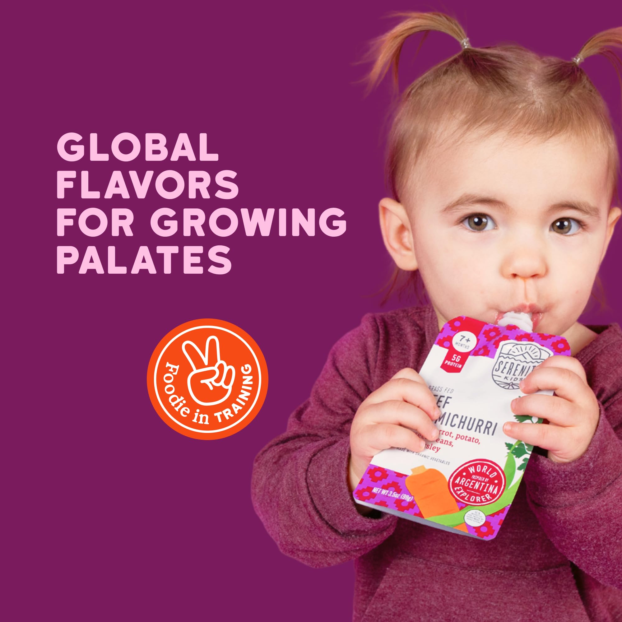 NOURISHING ADVENTURE: Let your little foodie-in-training explore bold flavors with Serenity Kids' beef chimichurri baby food pouch. Packed with nutrient-dense organic beef and veggies, it's the perfect baby food puree for adventurous taste buds