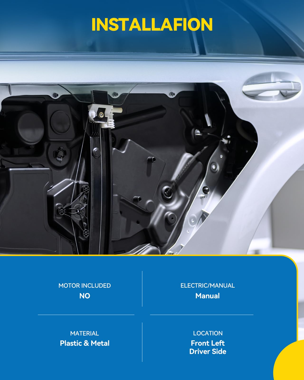 Easy Installation: Power window regulator for plug and play style. OE replacement power window regulator driver side, easy fit. No wire splicing necessary
