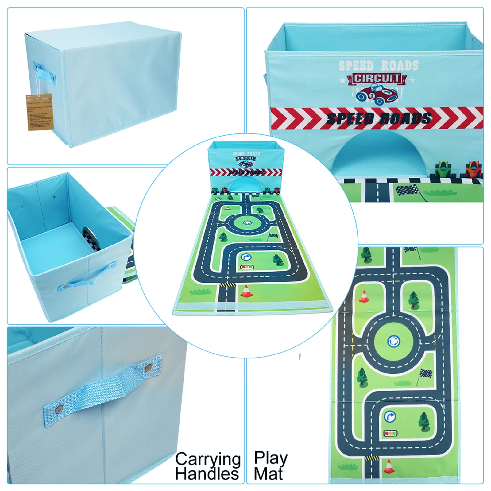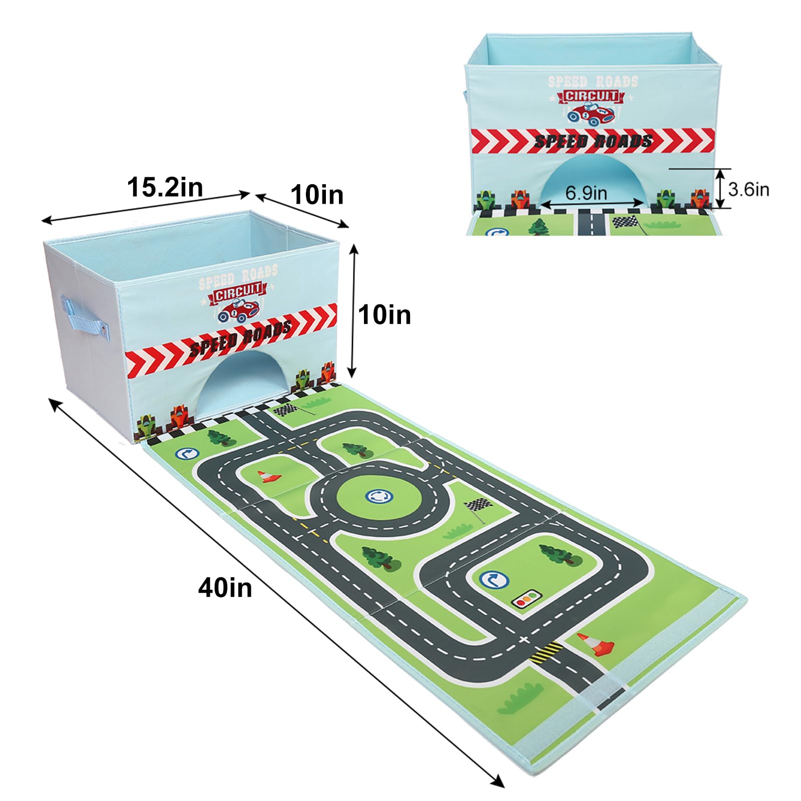 Large Size: Toy car storage box - 15.2"L×10"W×10"L; Play mat - 29.5"L×15.2"L