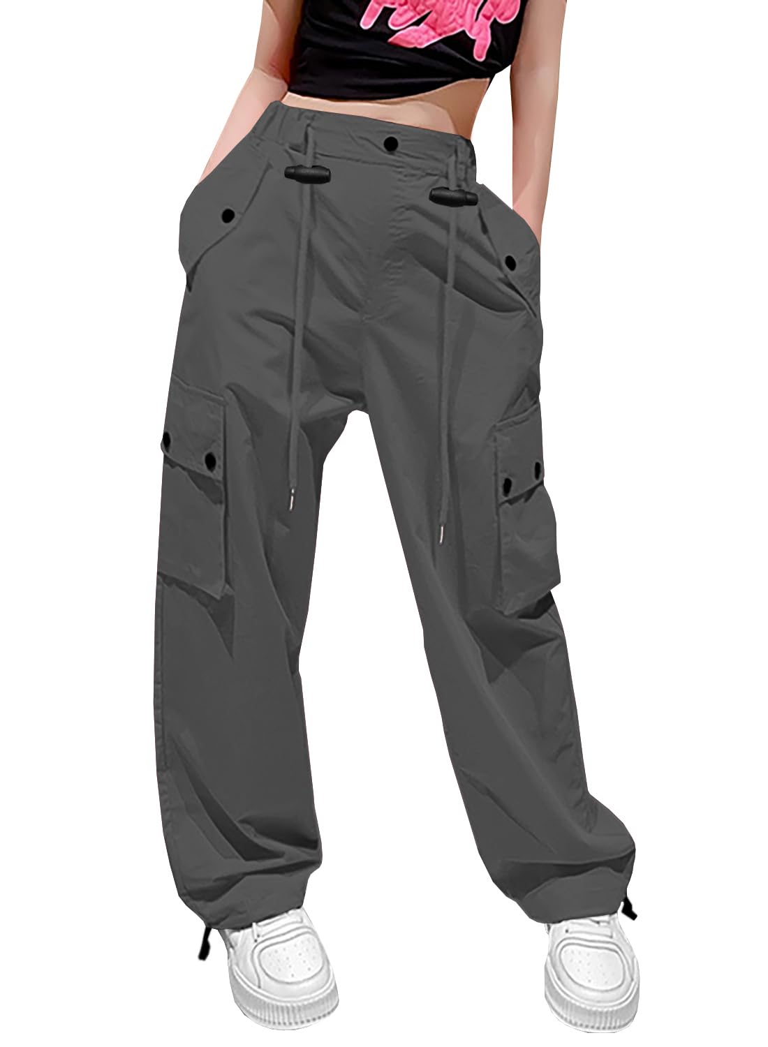 Design: These Girls Y2k Cargo Parachute Pants feature a modern design with drawstring waist and cuffs, offering two different ways to wear them.