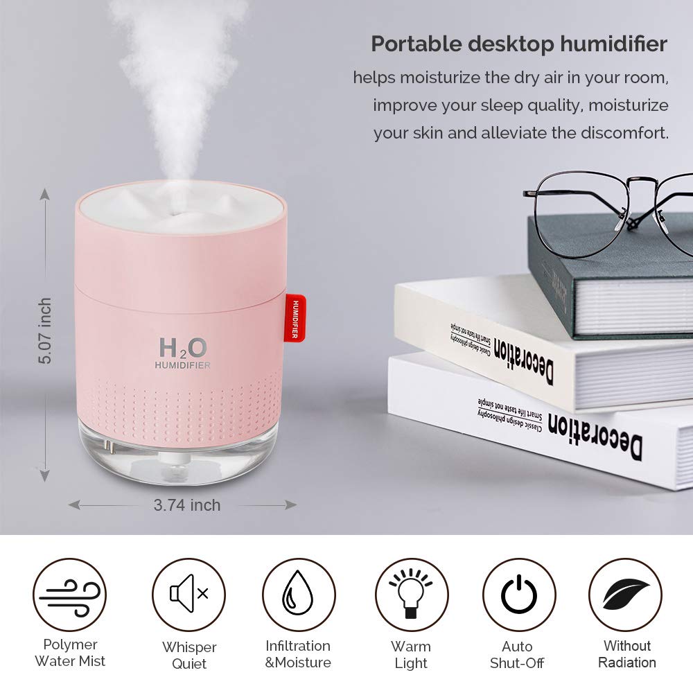 【PORTABLE MINI HUMIDIFIER】Portable and small design (3.74*5.07inch) is very easy take with you anywhere and super perfect for travel, bedroom, office, which is effectively moisturize dry skin and help you reduce skin peeling.
