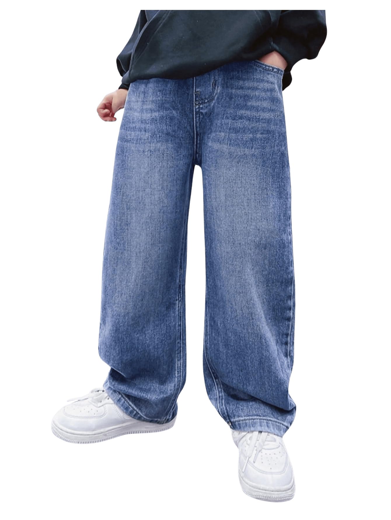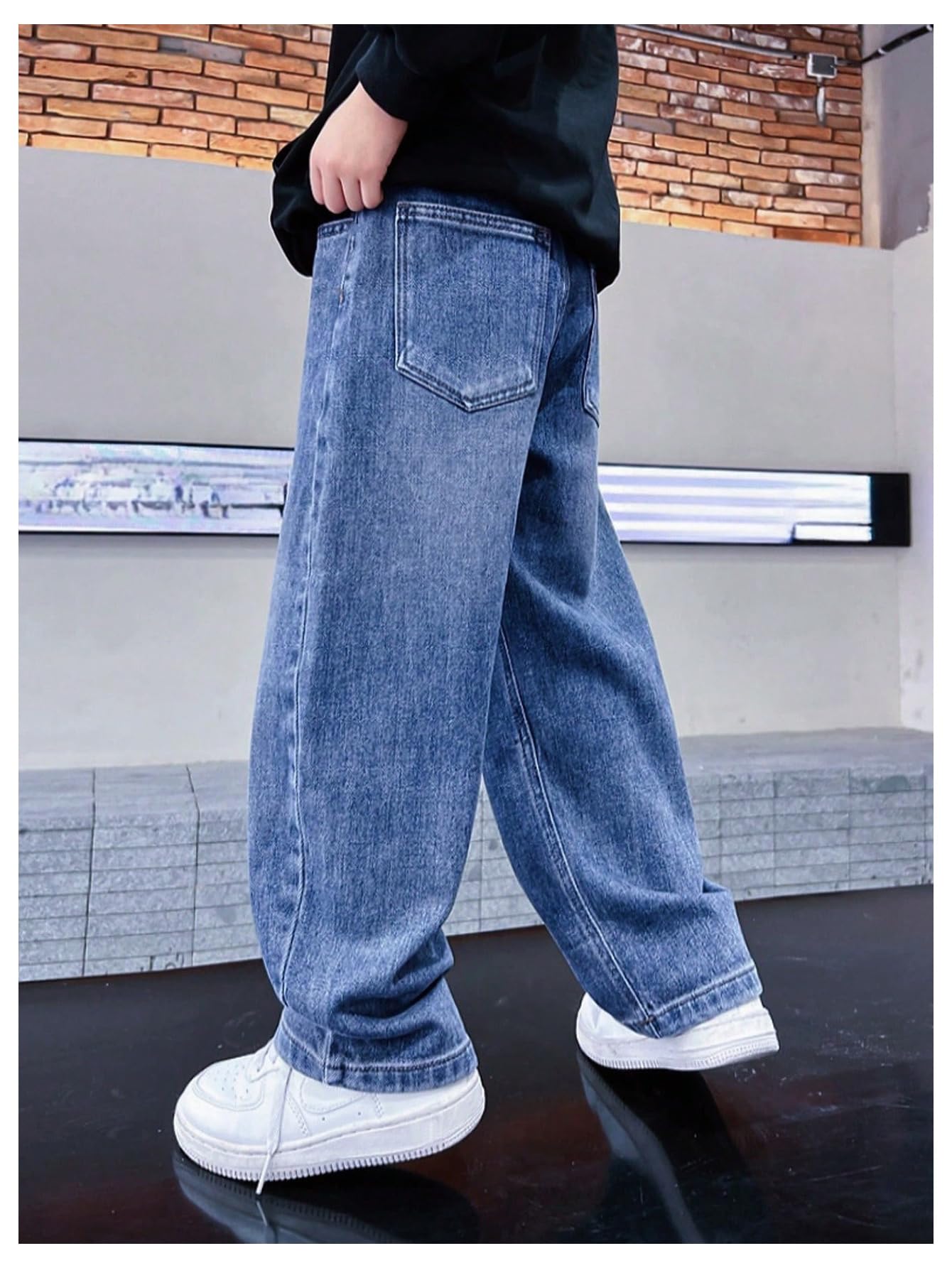Straight Leg, Loose Fit, Button Front, Zipper Fly, Solid, Long Denim Pants