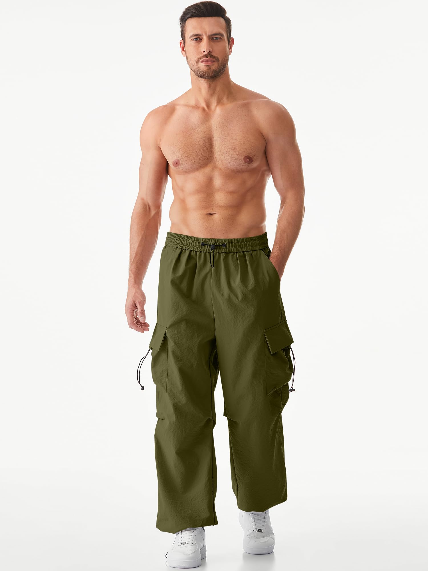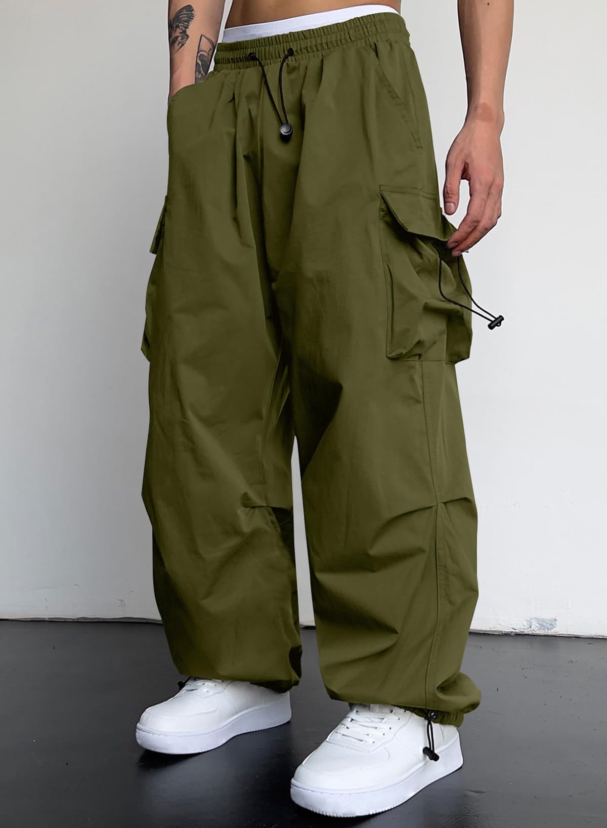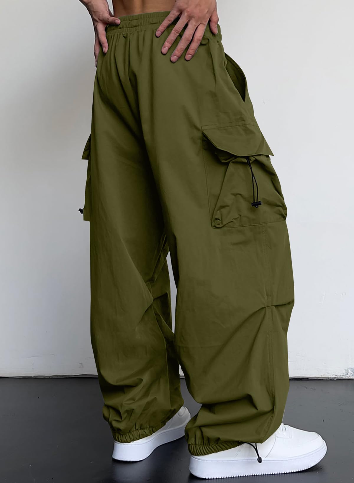 Trendy Design: JMIERR's men's cargo pants blend parachute pants design with a wide flare leg, reminiscent of 90s hippie grunge style. Featuring a unique and bold look, these pants include an elastic waistband, adjustable drawstrings, and 4 pockets, making them a super chic addition to any stylish men's wardrobe.