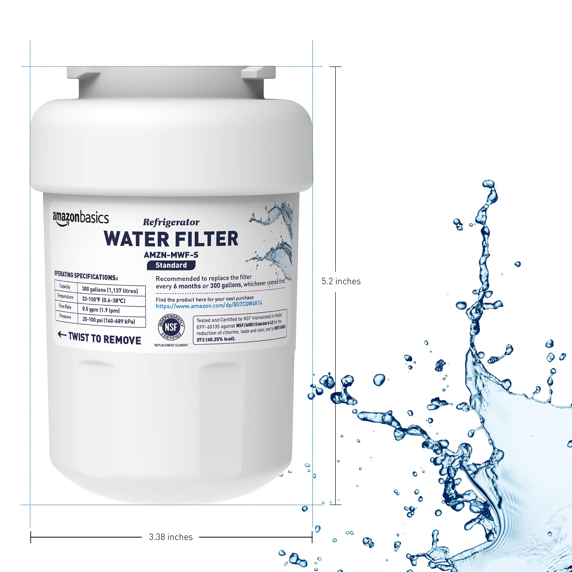 Product Description Amazon Basics Replacement GE MWF Refrigerator Water Filter Cartridge - Pack of 3, Standard Filtration From the Manufacturer Amazon Basics