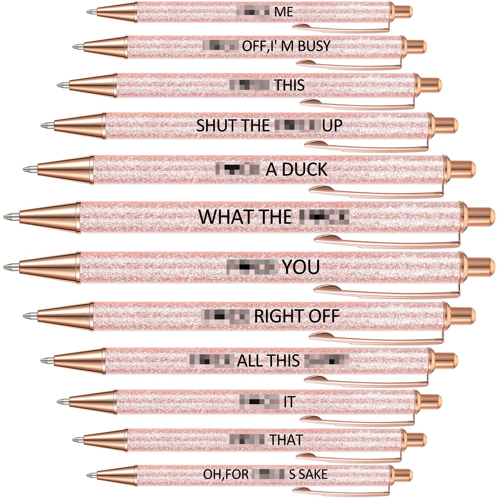 🎁Funny pens for the home, office, or on-the-go. A must among office supplies if you want to keep your day light, naughty, and hilarious without being too rude. 🎁7 smooth epoxy resin glitter pens. The lettering is above the resin. Lettering pictured above. All pens are black ballpoint.