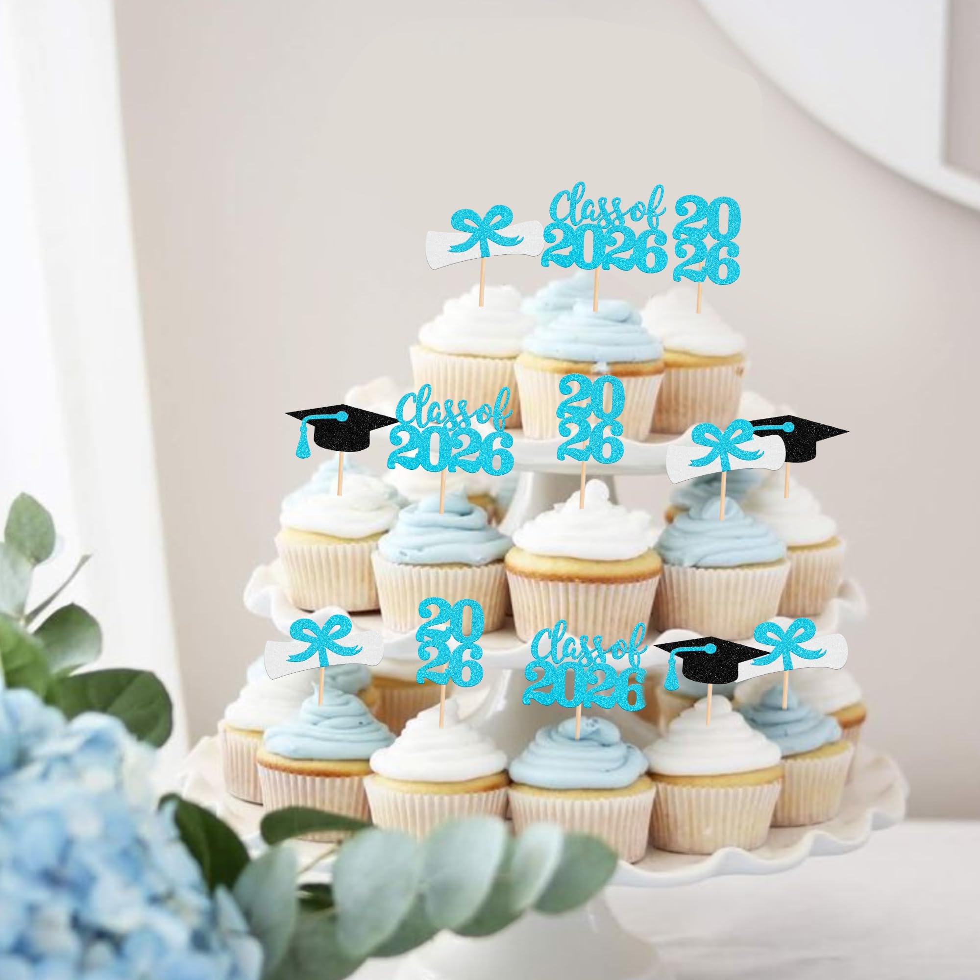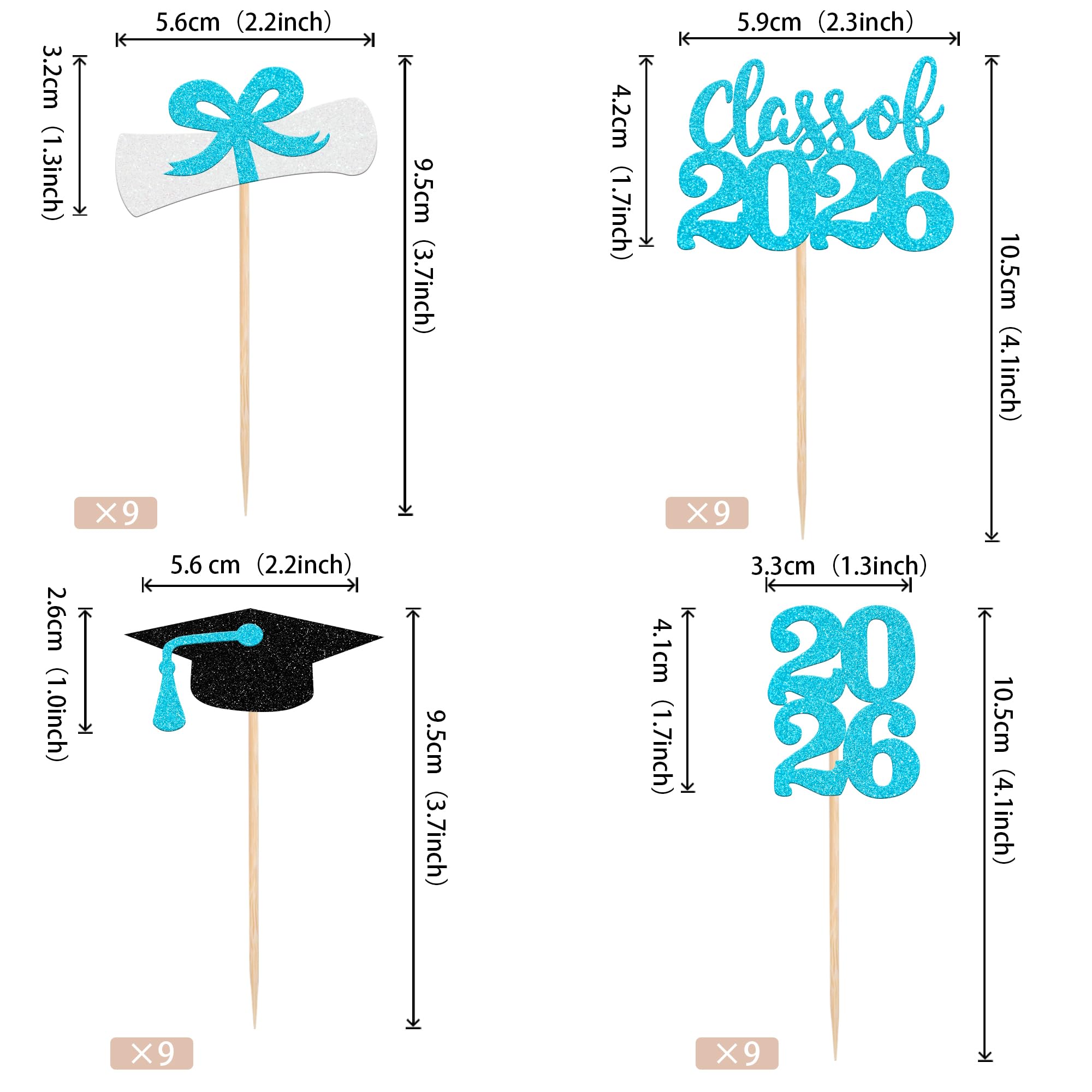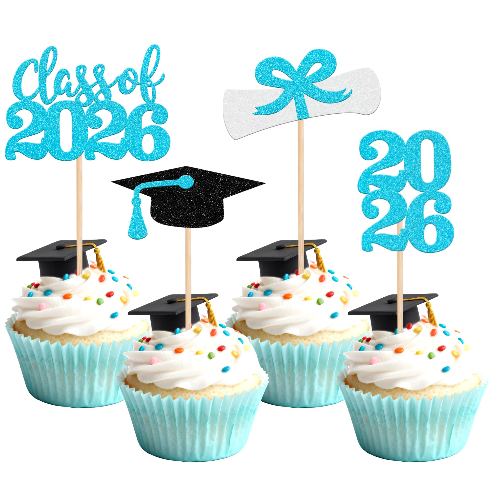Buy with Confidence ! Our 2026 graduation cupcake toppers are are intended for decoration only, please do not put them in oven or microwave. Please contact us in case of any problems, we will do all we can to make you satisfied. 2026 Graduation Theme Party Cupcake Toppers Decorations Perfect for 2026 graduation theme party cupcake decorations, such as kindergarten, primary, junior, senior high school, college, Master or Ph.D. graduation . Pack of 36 pcs, 9 pcs of each color. The size is 2.2*3.7/ 2.3*4.1/ 2.2*3.7/ 1.3*4.1 inch ( with stick ) Made of high quality glitter paper card stock and food grade sticks,thick and sturdy. These 2026 graduation cupcake toppers are single glitter, the back is white, and they are intended for decoration only, please do not put them in oven or microwave. If the item you received has any defects, please contact us .we will deal with it within 24 hours.