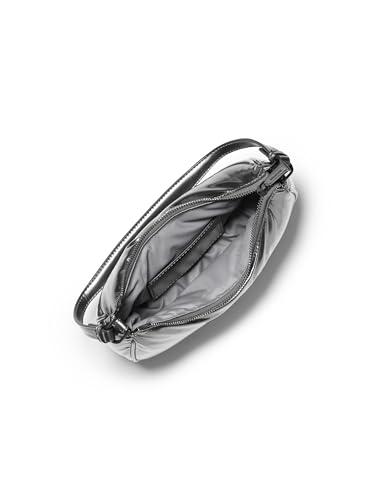 Materials: Made from a metallic polyester blend with gunmetal hardware.