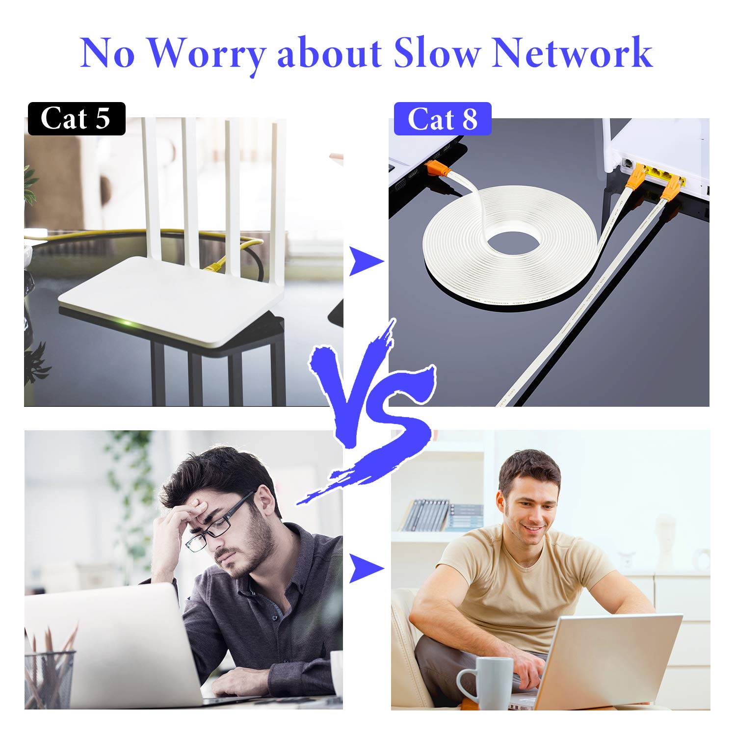 Universal Compatibility: The Cat8 internet cable backward compatible with Cat5, Cat5E, cat6, cat6A and Cat 7 equipment and works perfectly with networking switch, routers, modem, PS3, PS4, X-box, patch panel, servers, networking printers, laptop, coupler, hubs, smart TV, and other device with RJ45 connectors. It is also perfect for AI (Artificial Intelligence) smart products such as Amazon Alexa, Google Home, Apple Siri and so on