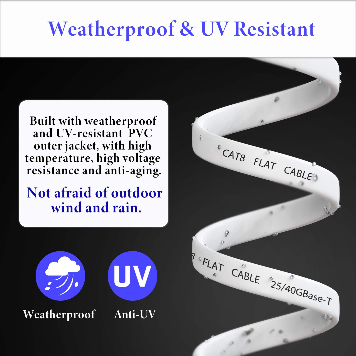 Weatherproof & UV Resistant: All the ethernet cord pass professional cable Analyzers tested. Manufactured with upgraded weatherproof and UV-resistant PVC outer jacket, Cat 8 cable is waterproofed, anti-corrosion and more durableοΌwearproofοΌpull-resistant for heavy duty work. Suitable for both outdoor and indoor use with longer service life. With Smolink high speed network cable, you will not experience a lag or stop on transferring data