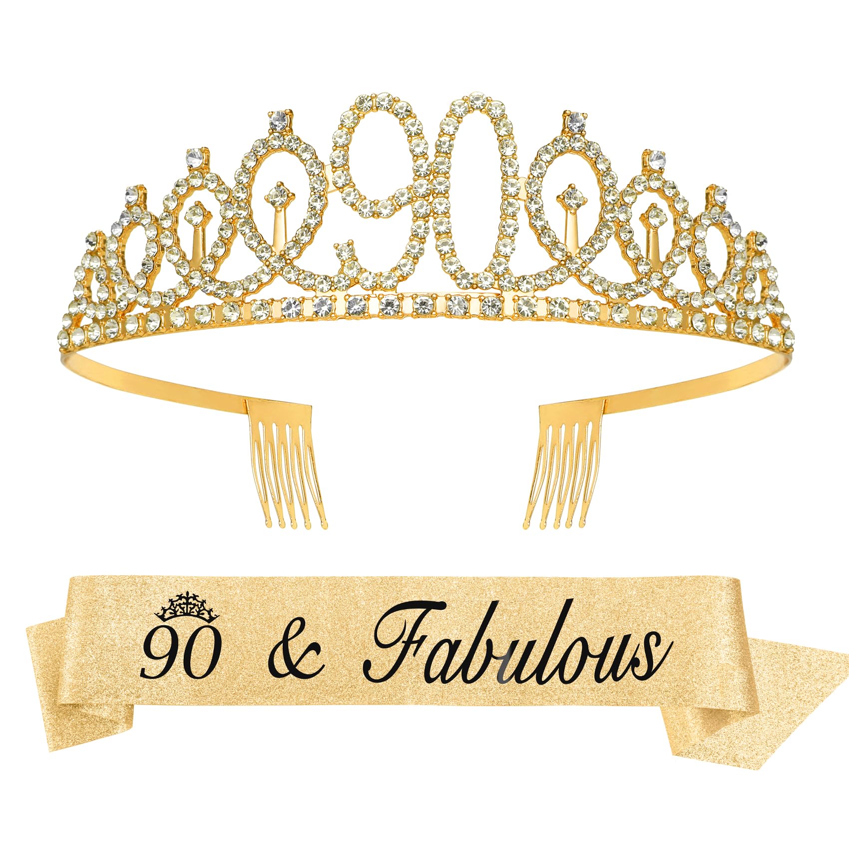 šBirthday Crown for Girls: 90th birthday crown and sash for women, gold 90th birthday crown, 90th birthday tiara and sash, 90th birthday tiara gold, 90th sash and crown, 90th birthday decorations for women, 90th birthday gifts for women, happy birthday crown thoughtful unique gifts for colleague, educator, teacher, nurse, doctor, godmother. Perfect for special birthday girl party.