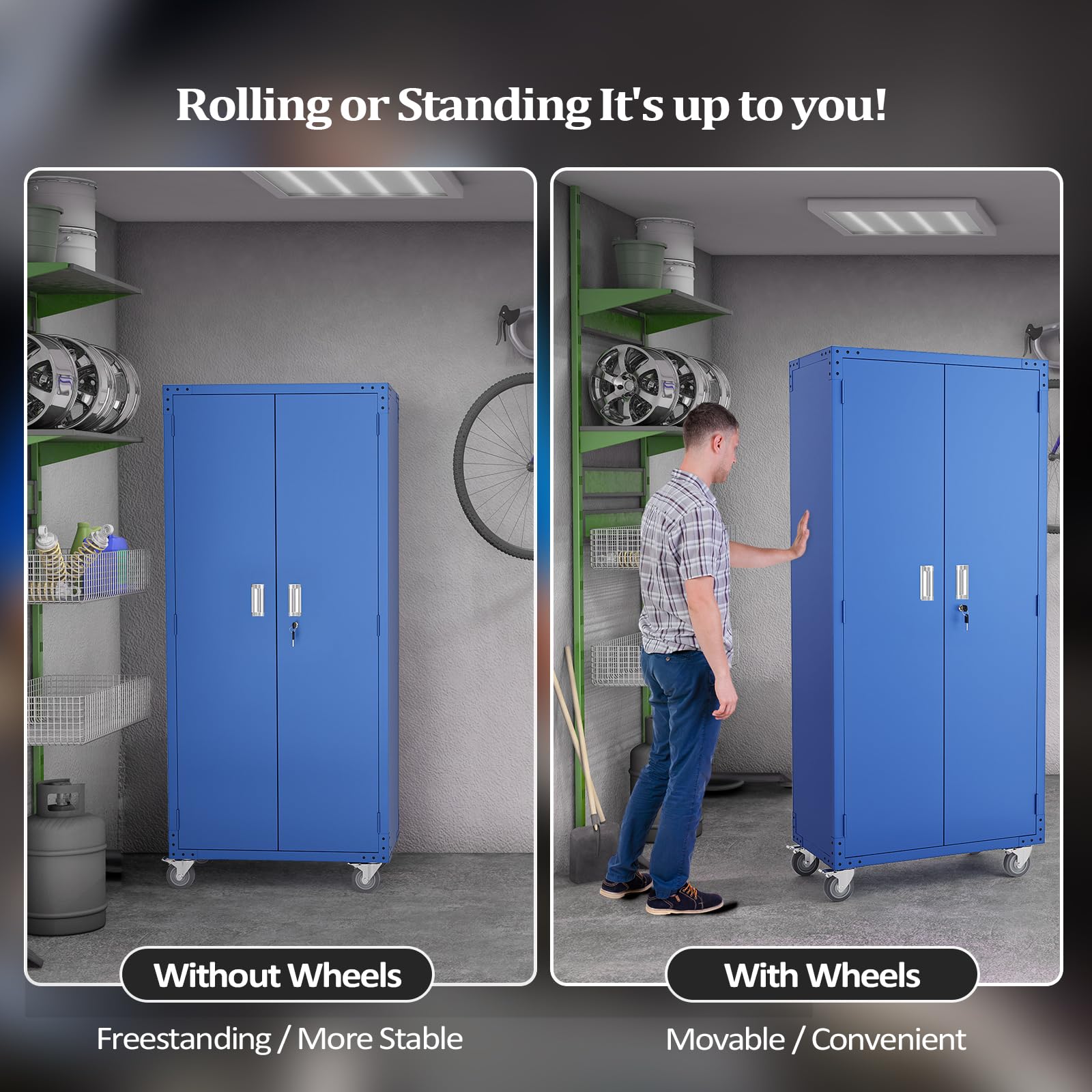 【Excellent Load-bearing Capacity】With a strong and durable metal frame, this steel storage cabinet allows you to store heavy garage instruments up tp 150lbs per shelves(750lbs in total). It is perfect for office, garage, gym, workshop, classroom, utility room, etc.
