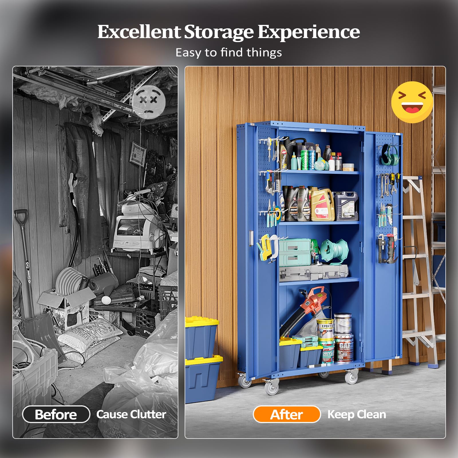 【Multi-functional Lockable Doors】VINGLI metal cabinet has lockable doors with 2 keys, which will keep all your belongings secured. The extra built-in pegboards with hooks are helpful to declutter your garage tools or office sundries. The locking handles and magnet devices are friendly to users