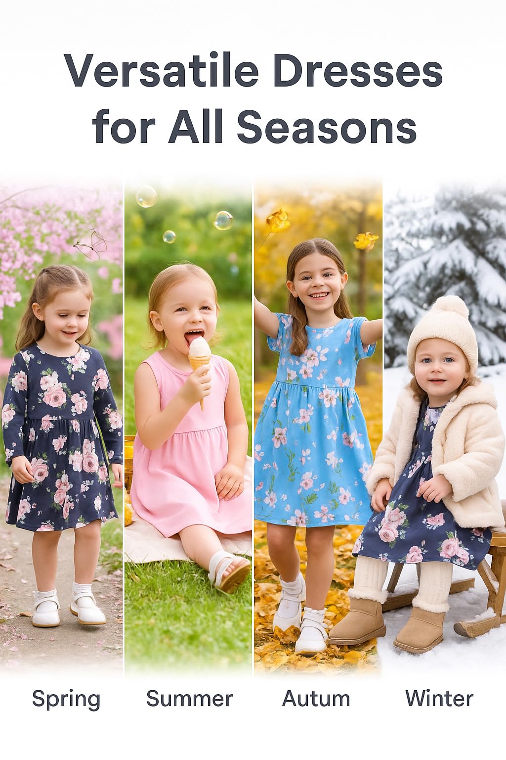 Sized for Growing Girls: Fits from 18 months to 12 years, covering infants, toddlers, and girls up to pre-teens. The pull-on design allows for independent dressing, and the dresses work for all seasons—simply layer for cooler weather.