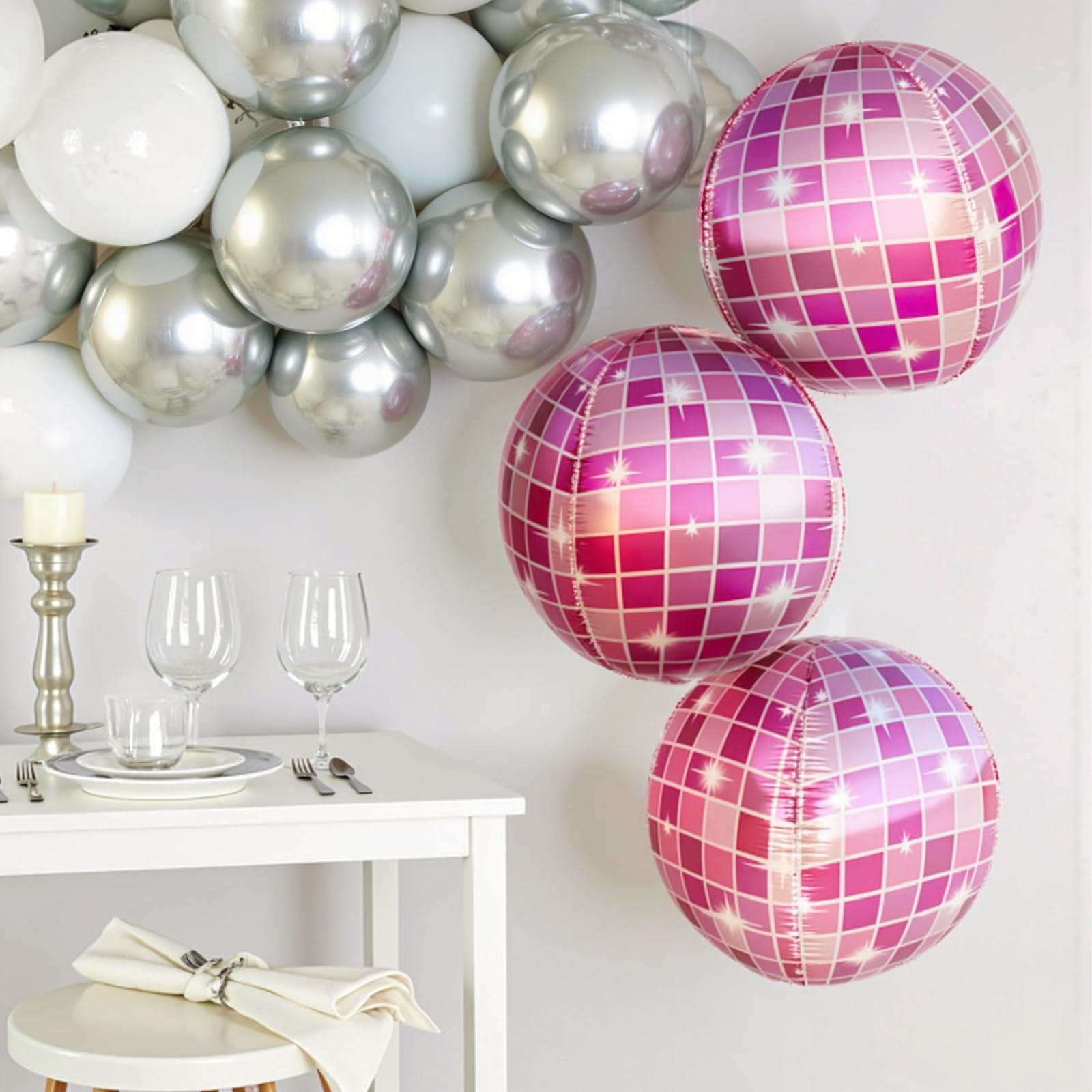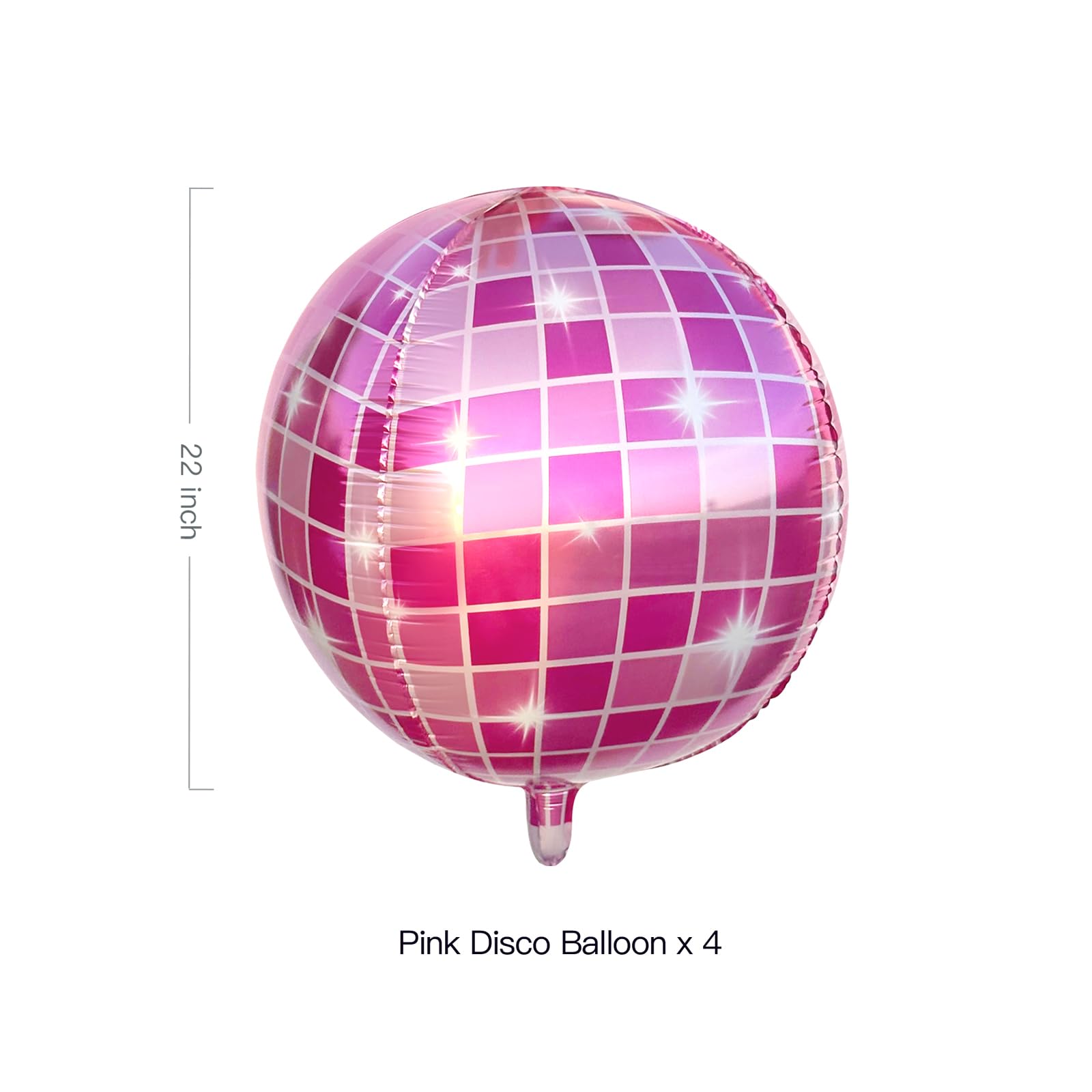 4D Disco Foil Balloon: 4 x 22 inch inflatable disco ball balloon, different shades of shiny pink, fabulous disco ball party decor
