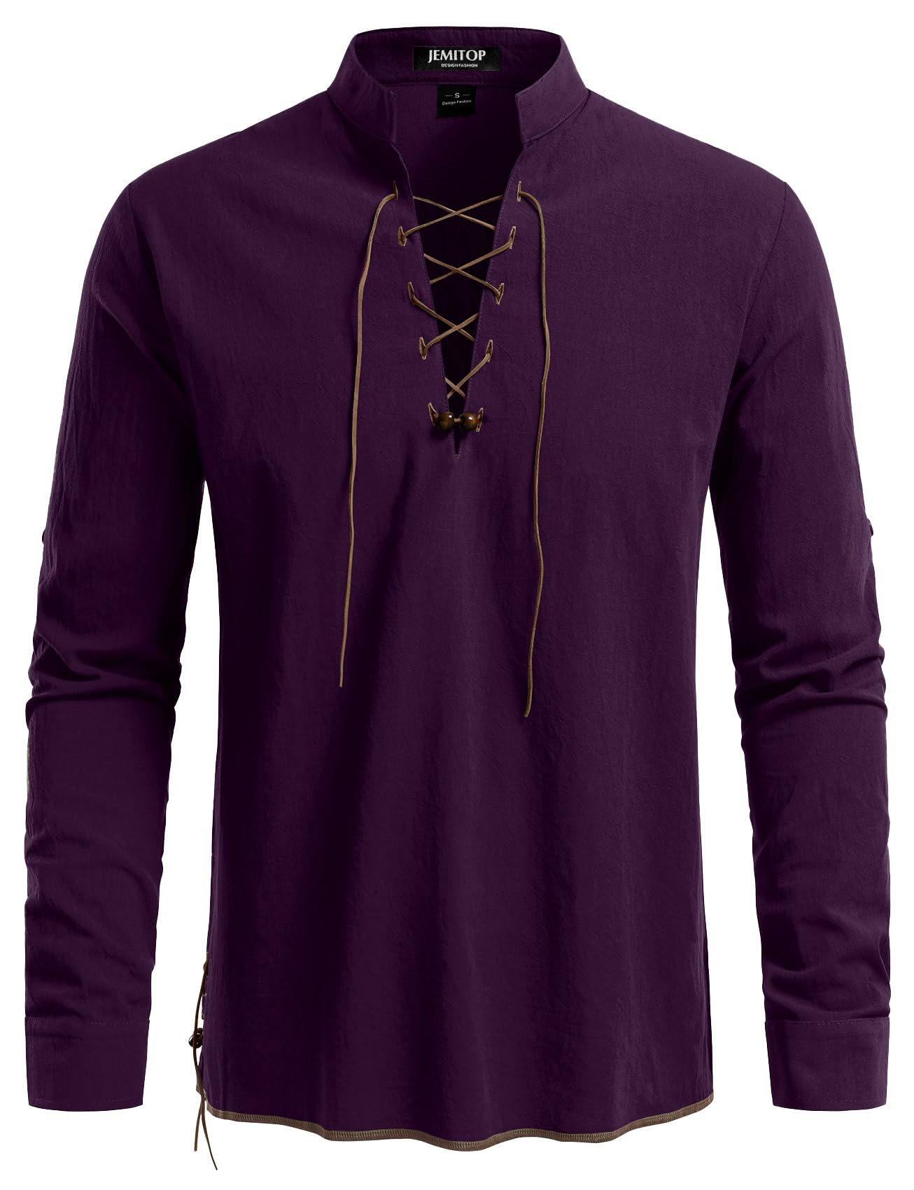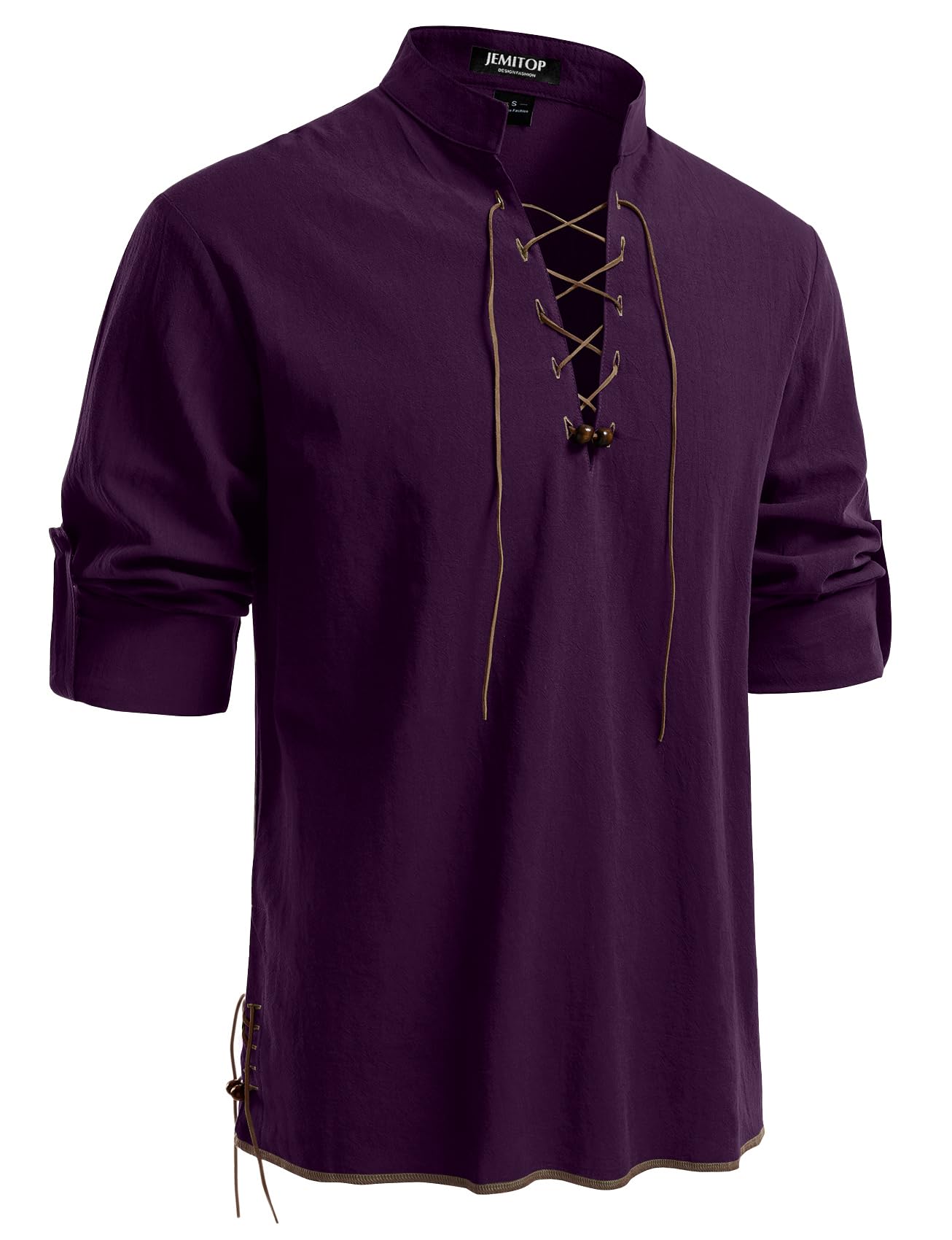 Design Concept: Cosplay costume for renaissance,pirate,viking,medieval,halloween / Retro drawstring shirt / Regular fit / Mandarin collar / Long sleeve / Rolled sleeve