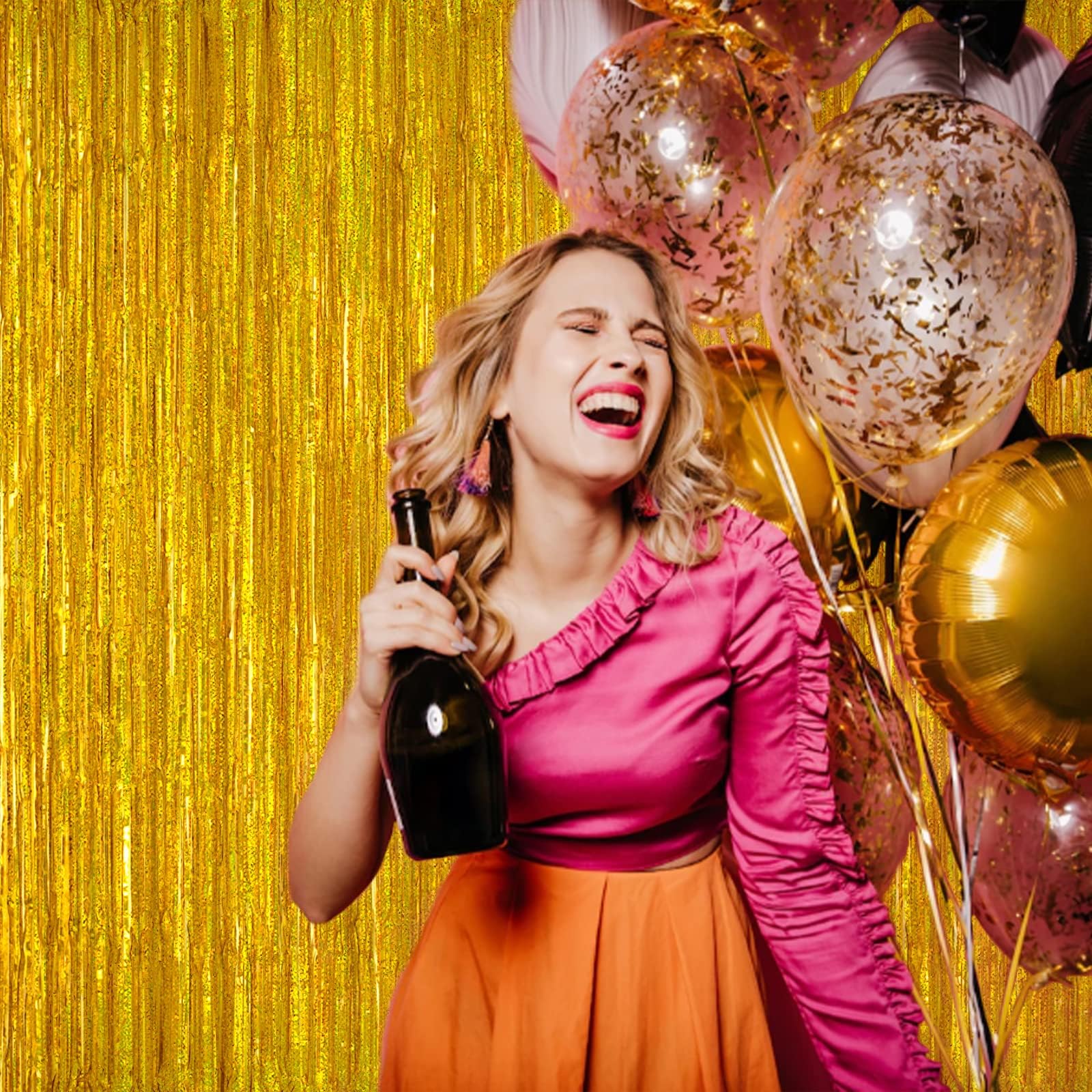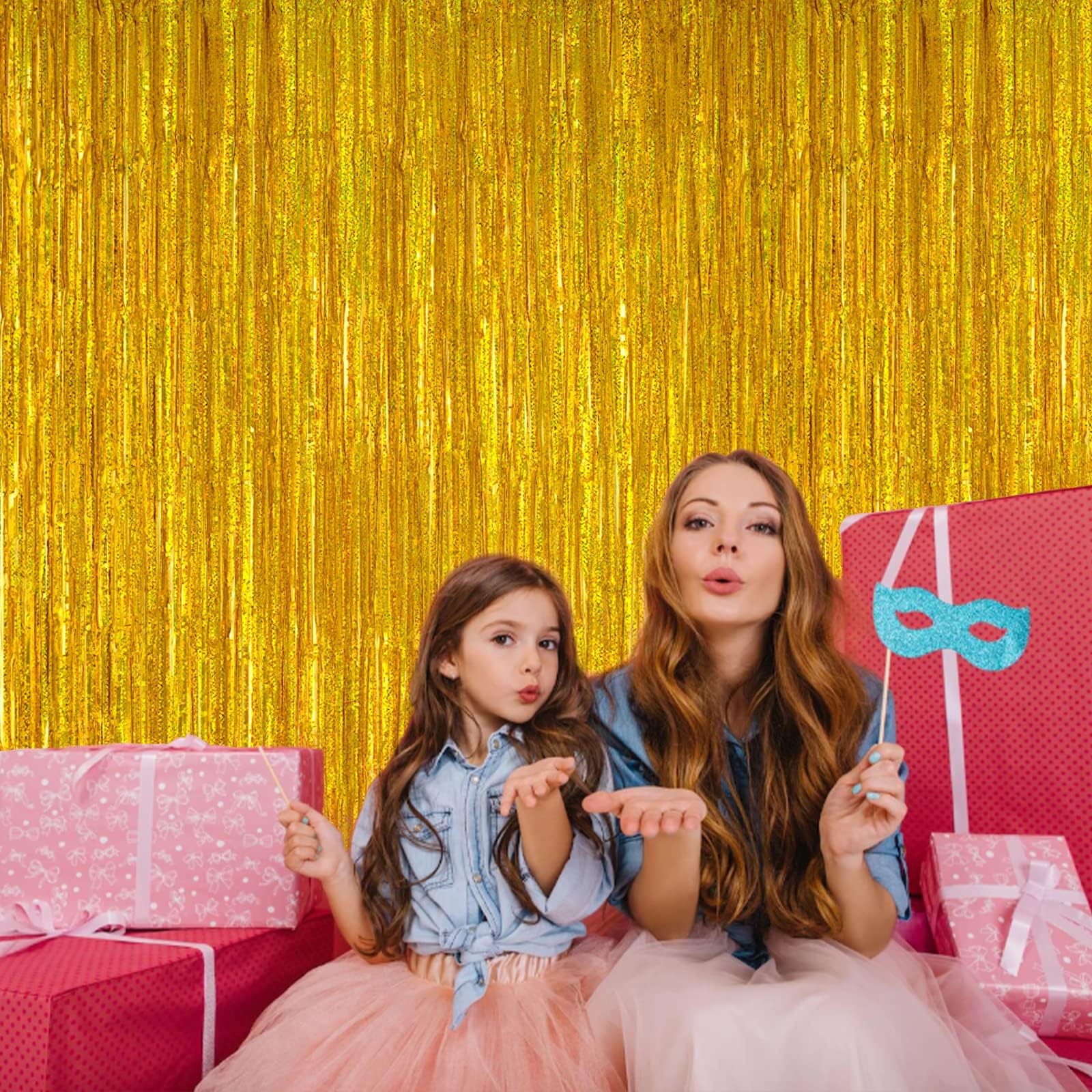 【Fantastic Decoration】These streamer foil fringe backdrop curtains are great for any party, shindig, dance, get together, etc, also work well as a photo backdrop, photo booth and so on. You can attach some balloons, banner, or pompom balls on this gorgeous shiny curtain background, make the most of your imagination and create a nice party.