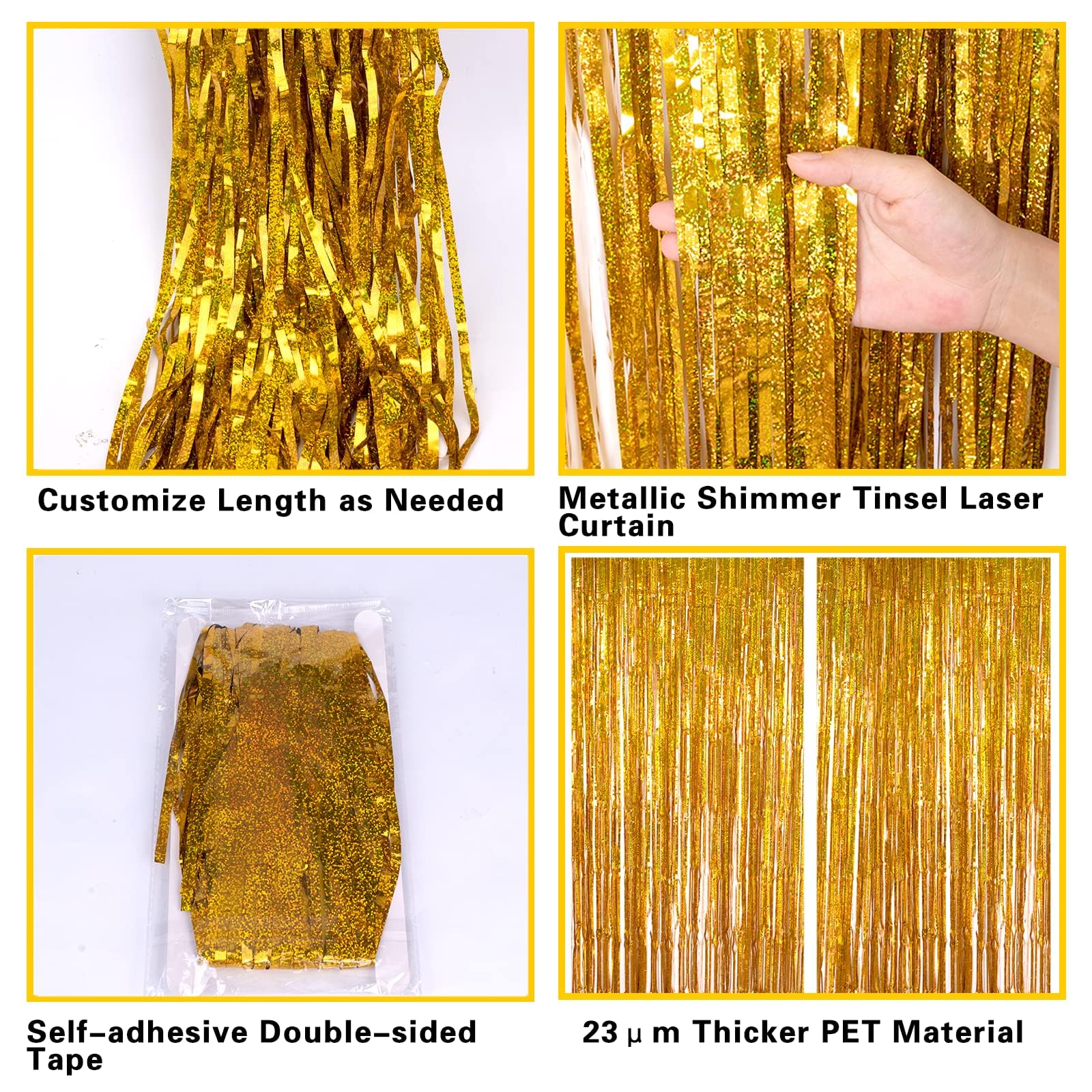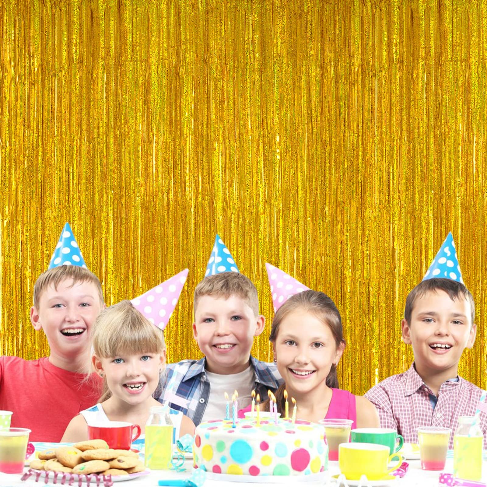【Multiple Applications】This beautiful gold tinsel curtain party decoration is perfect gold backdrop for birthday, sweet 16, wedding, bridal shower, baby showers, bachelorette, theme party, graduations, Halloween, Christmas, 2023 New Year Eve, movie night, speakeasy party, farewell party, retirement party and more.