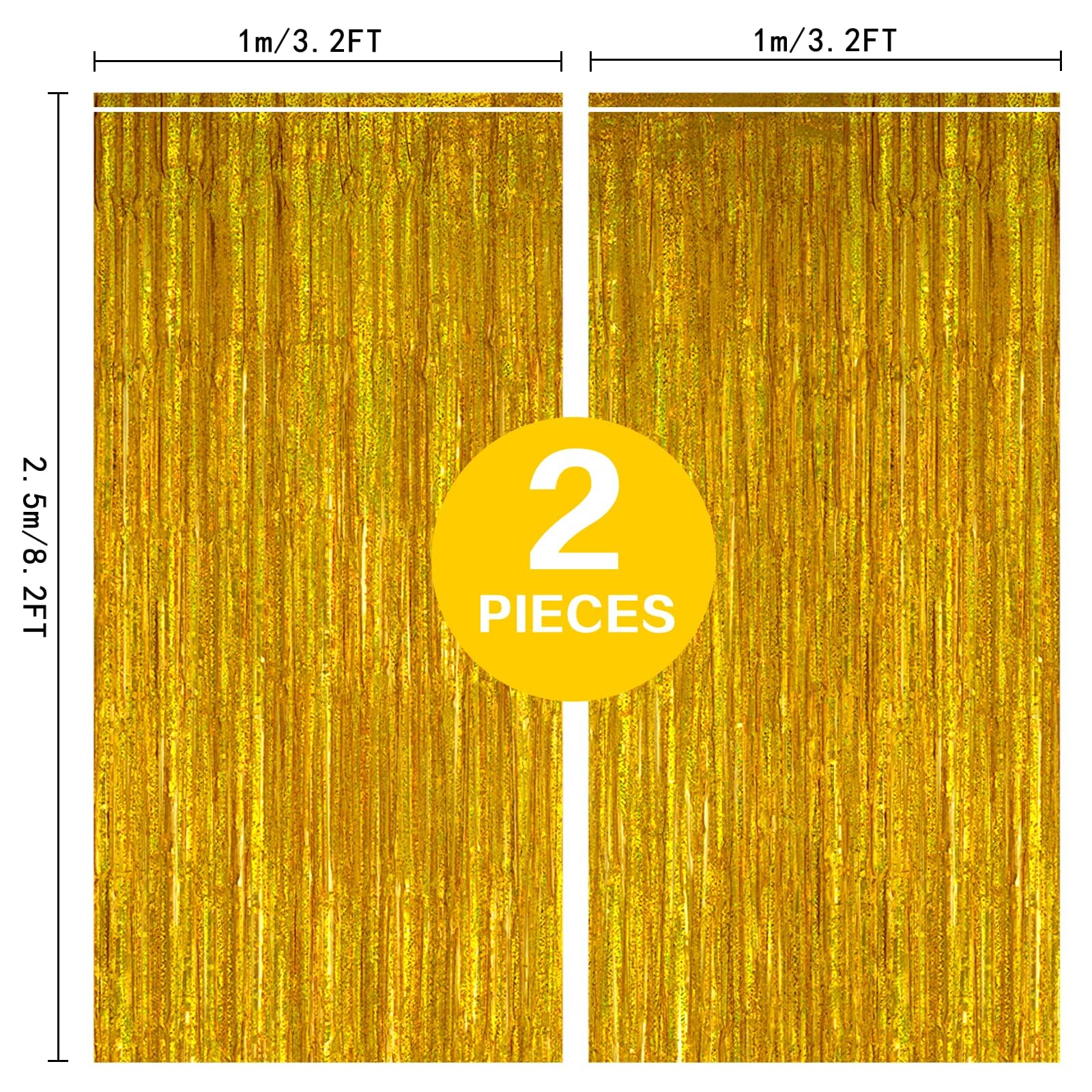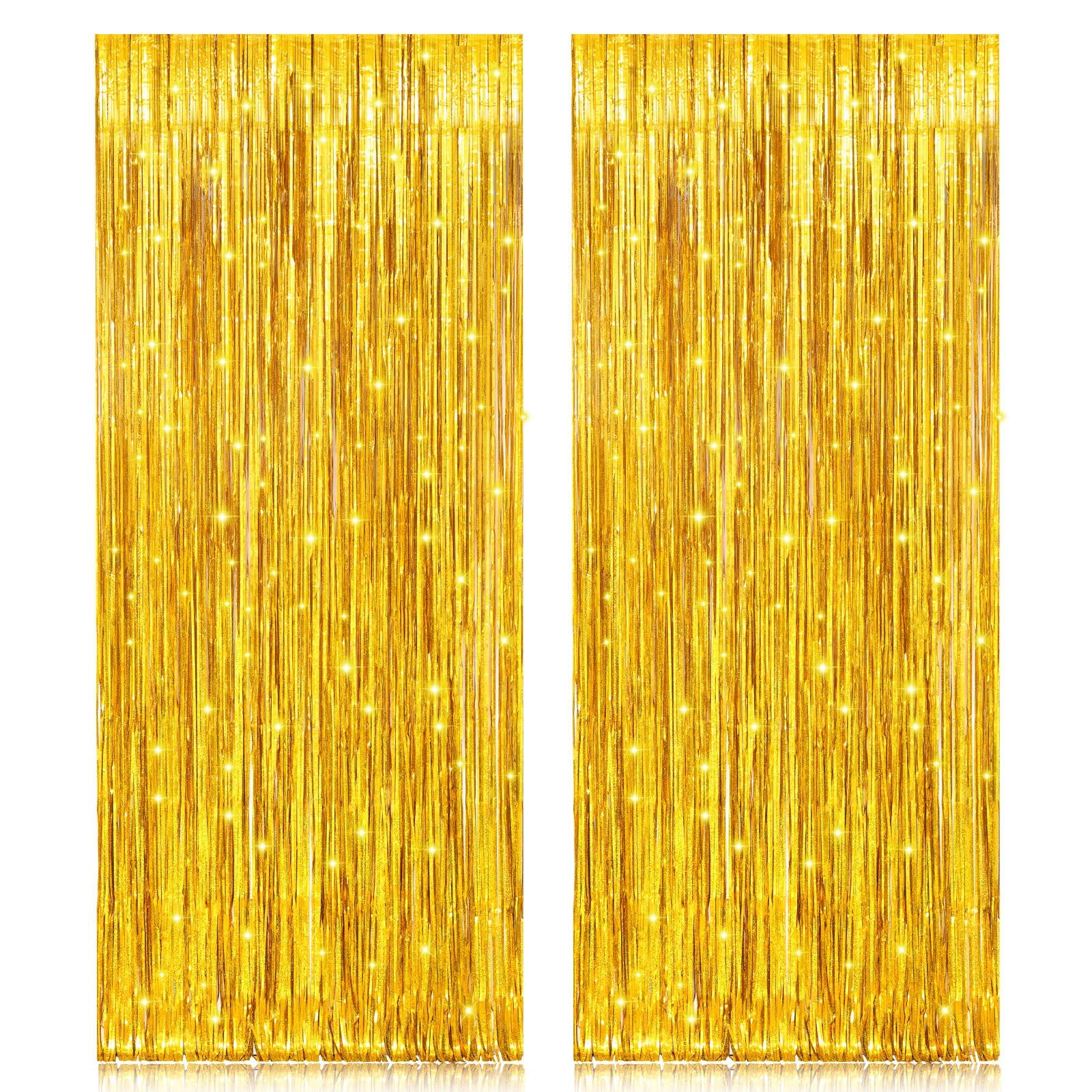 【Package Includes】2 pack gold foil fringe curtains; Big size (wide x drop): 3.2 x 8.2 feet, enough length for decorating your party, can be freely cut to suitable size according to needs.