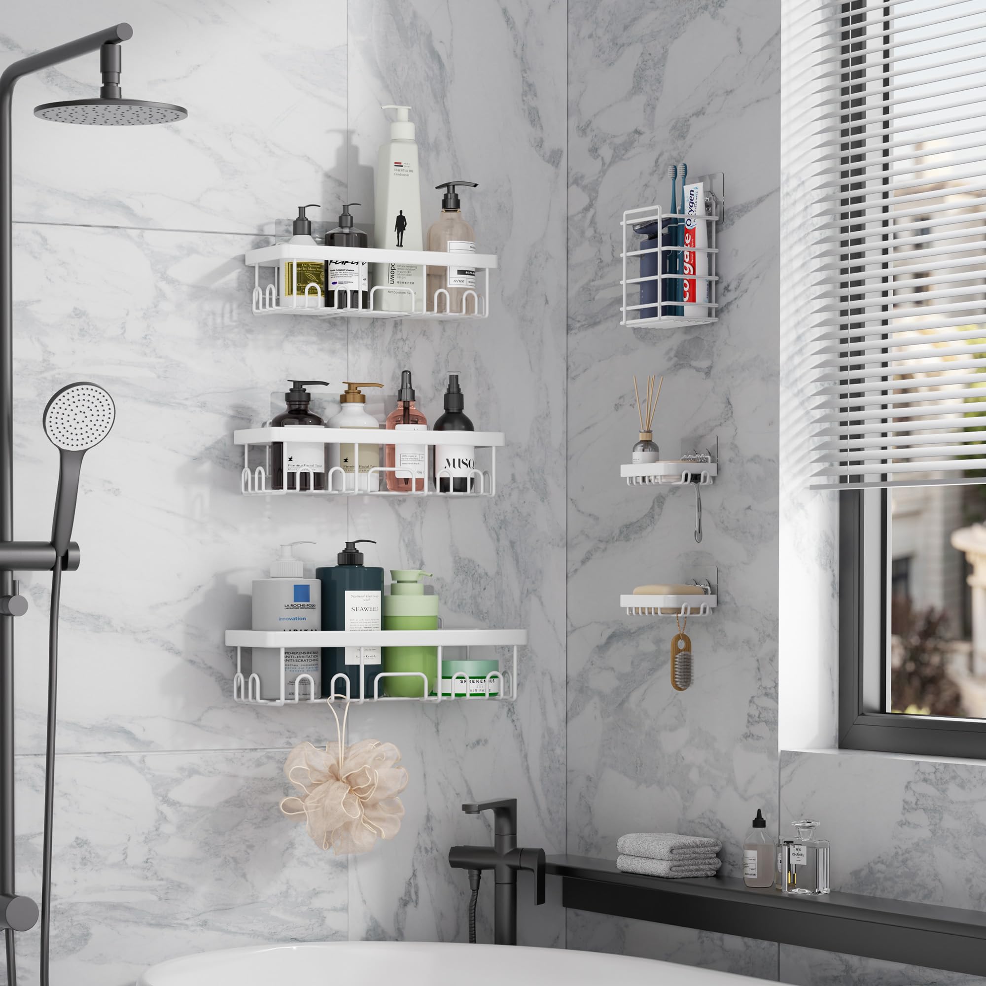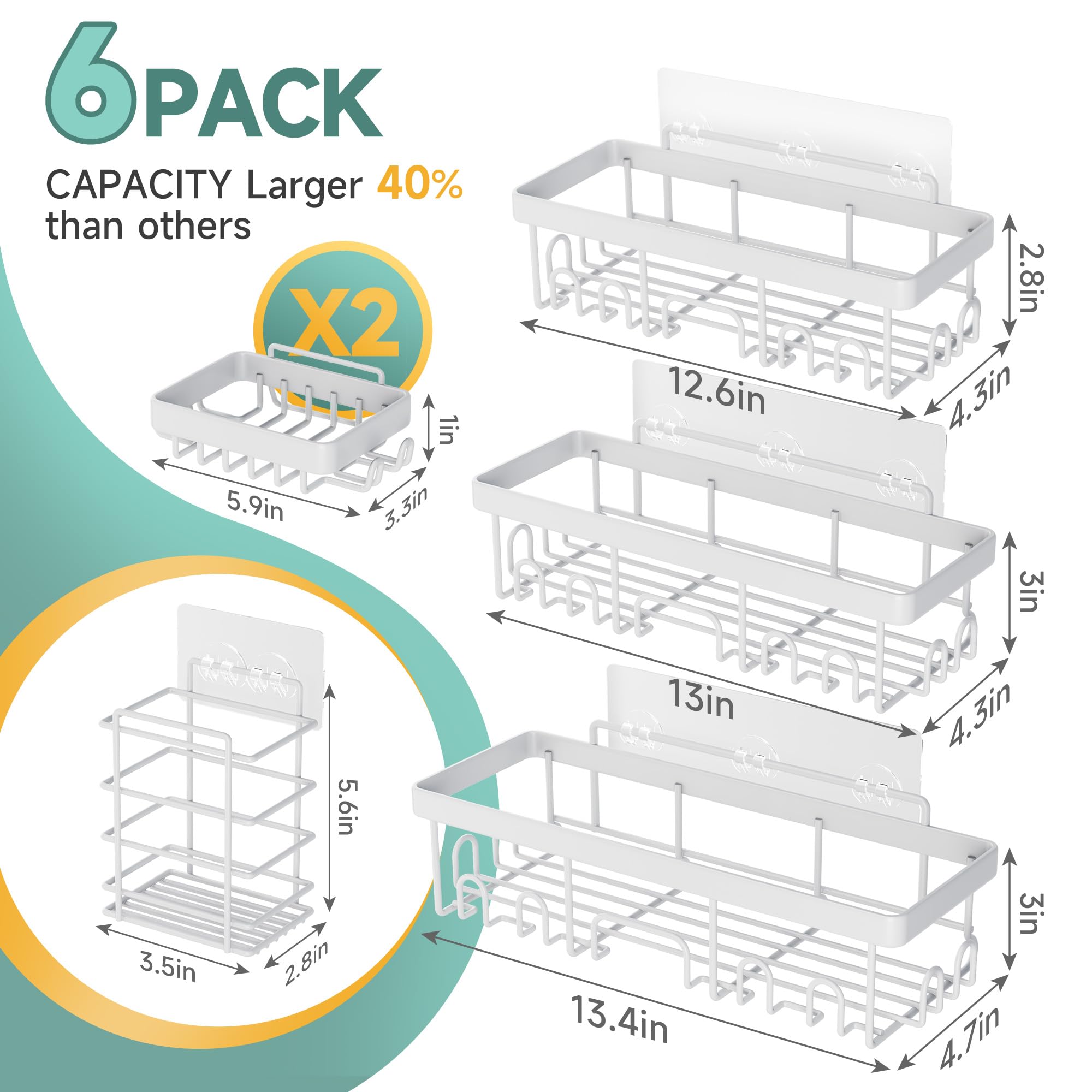 Comprehensive Organization: This 6-piece set includes large, medium, and small caddies, along with soap and toothbrush holders, providing versatile storage for all your shower essentials