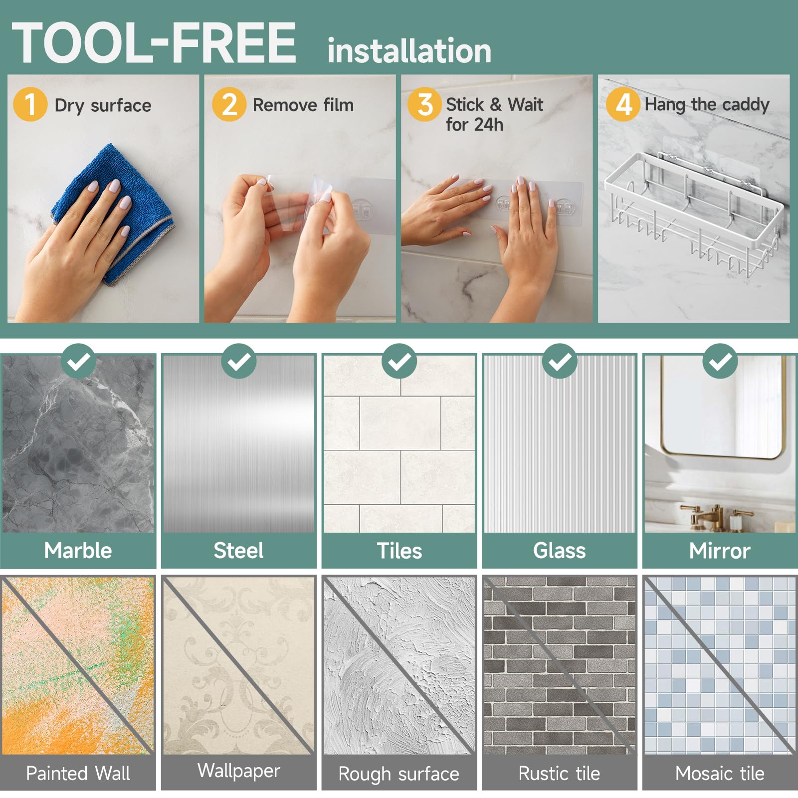 Versatile for Family Use: Perfect for family bathrooms, this set adapts to various needs, making it easy to organize shampoos, soaps, and more; enhancing shower convenience for everyone