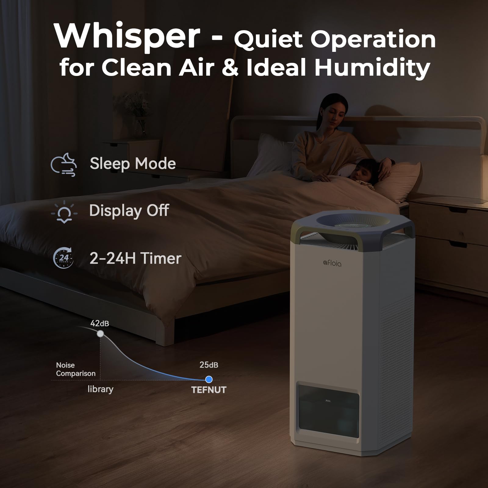 Quiet Operation & Timers: Sleep mode runs below 25dB for whisper-quiet nights, perfect for bedrooms and nurseries. Choose 2/4/8/16/24-hour timers to match your schedule—saving energy while keeping your space fresh exactly when you need it.