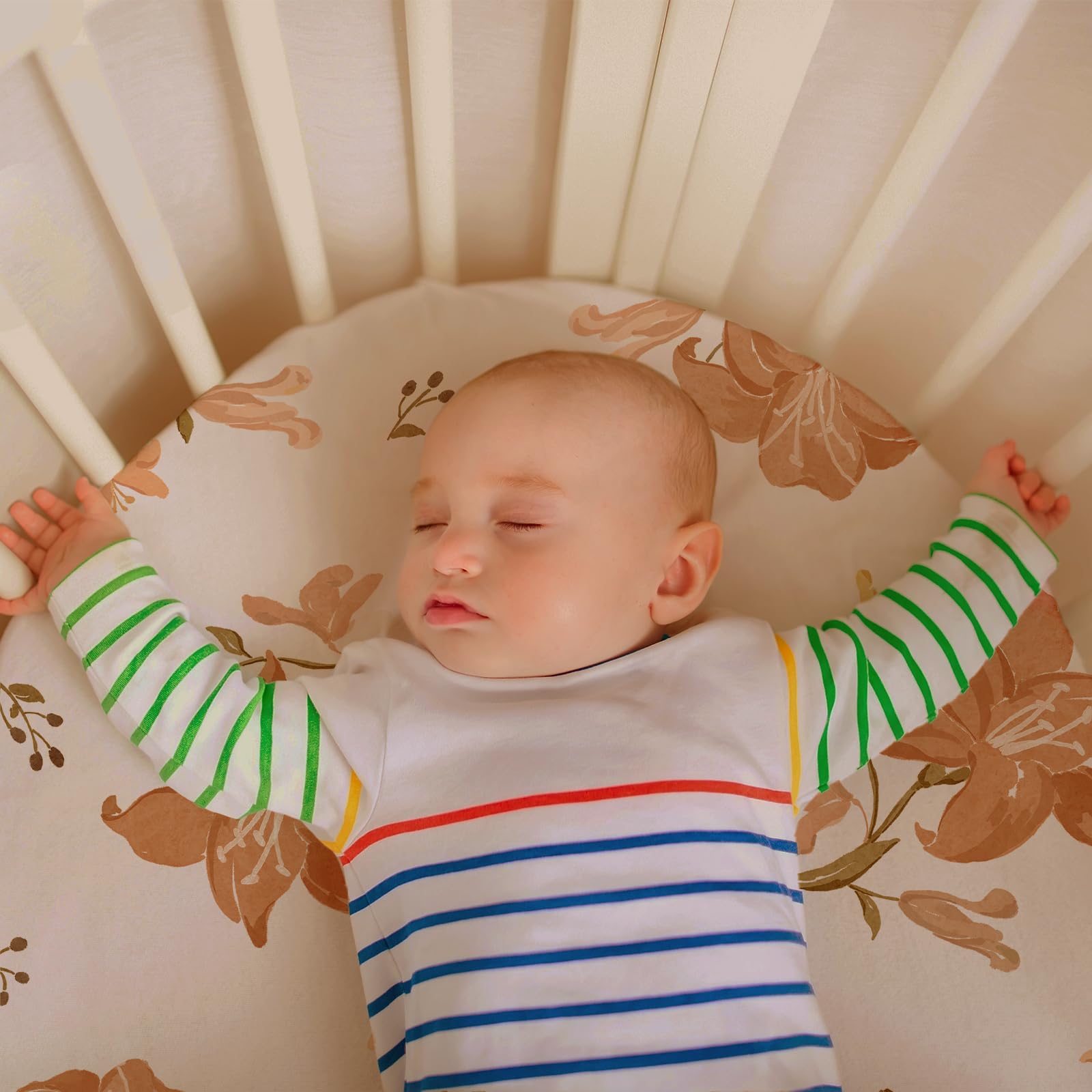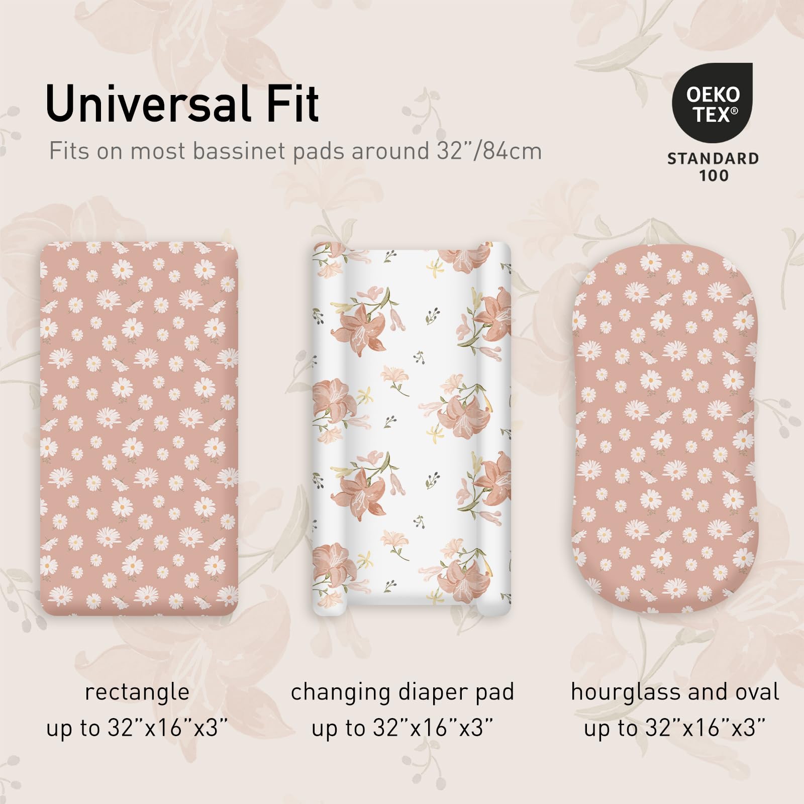 PARENT-FRIENDLY DESIGN: Our baby bassinet sheets that are incredibly easy to install and use. Featuring stylish floral patterns, they add a decorative touch to the nursery, perfect for capturing precious growth moments and milestone in photos. Compatible with most bassinets, loungers, cradles, and co-sleepers, fitting standard, oval, round, rectangular, and hourglass-shaped mattresses