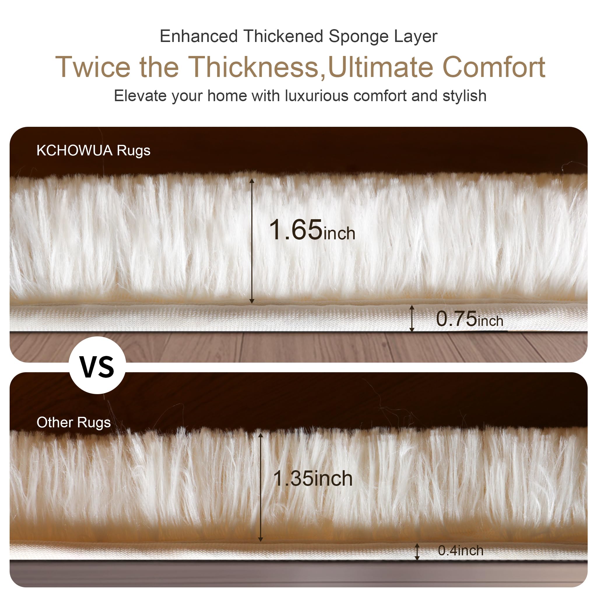 Ultra Softness & Luxurious Comfort: Indulge in unparalleled softness with our shaggy fuzzy rug, crafted from premium velvet fibers for a silky-smooth, plush feel. Featuring a thick 1.65-inch high-pile surface and a 0.75-inch cushioned memory foam layer, this luxurious, thickened area rug is twice as plush as standard options, delivering cloud-like comfort with every barefoot step. Perfect for bedrooms, living rooms, nurseries, kids’ play areas, and cozy reading nooks, this ultra-soft, sound-absorbing carpet adds warmth, reduces noise, and creates a soothing, inviting atmosphere in any space.