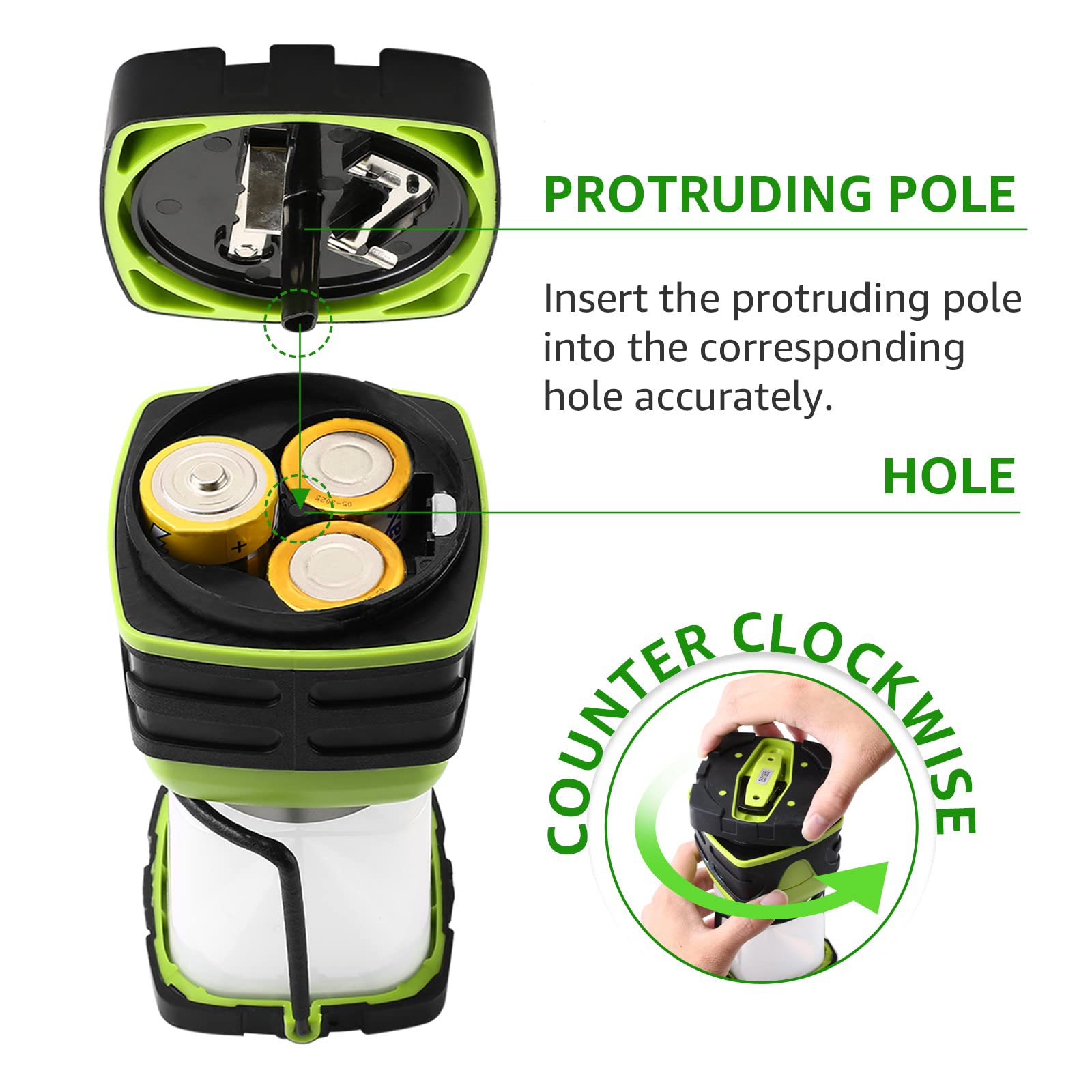 LE 1000LM Battery Powered LED Camping Lantern, Waterproof Tent Light with 4 Light Modes, Camping Essentials, Portable Lantern Flashlight for Camping, Emergency Light, Power Outages, Not Rechargeable