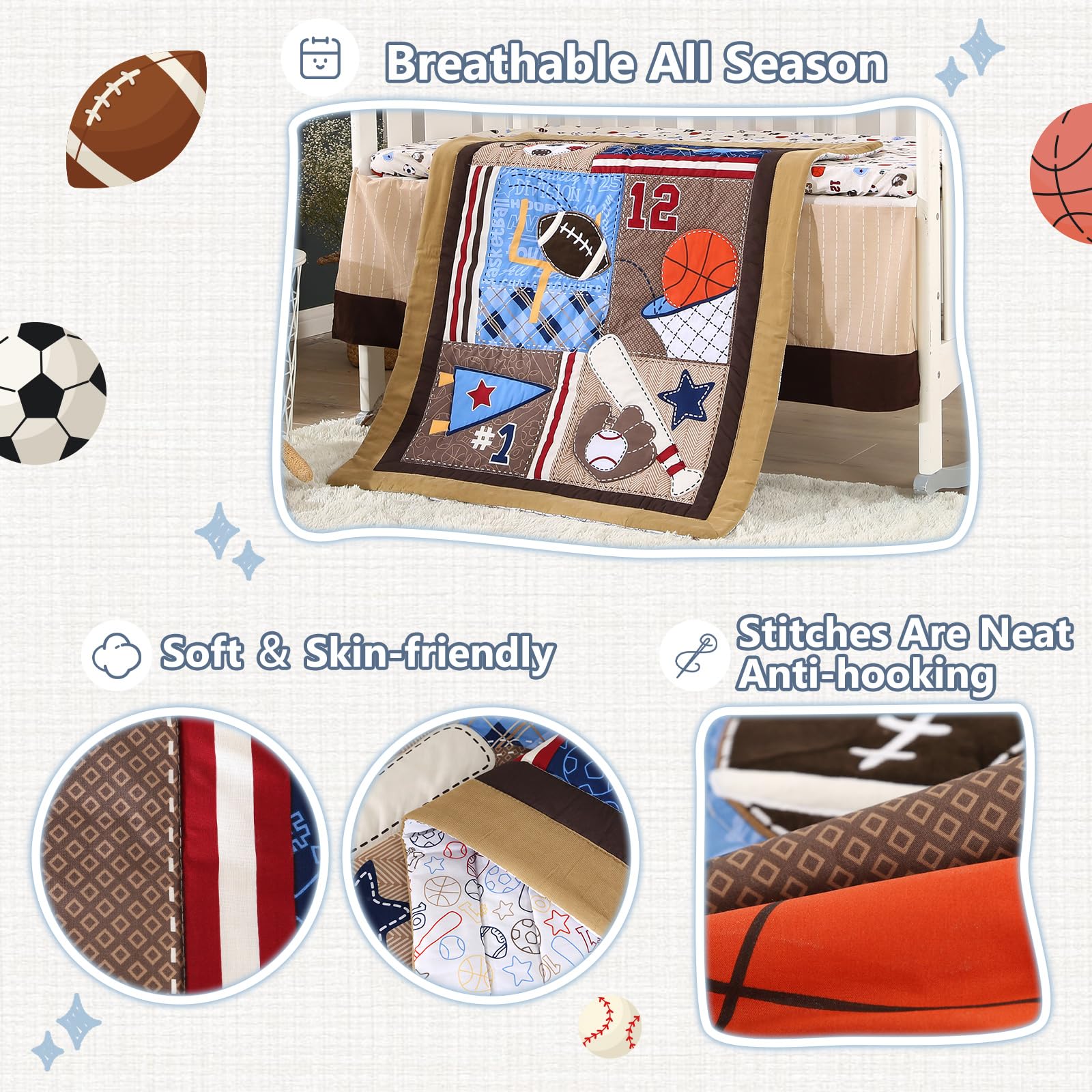 Perfect Gift: This baseball 3 pieces crib comforter set for boys makes the perfect gift for babies shower for your baby, new mom, relatives, friends or new parents