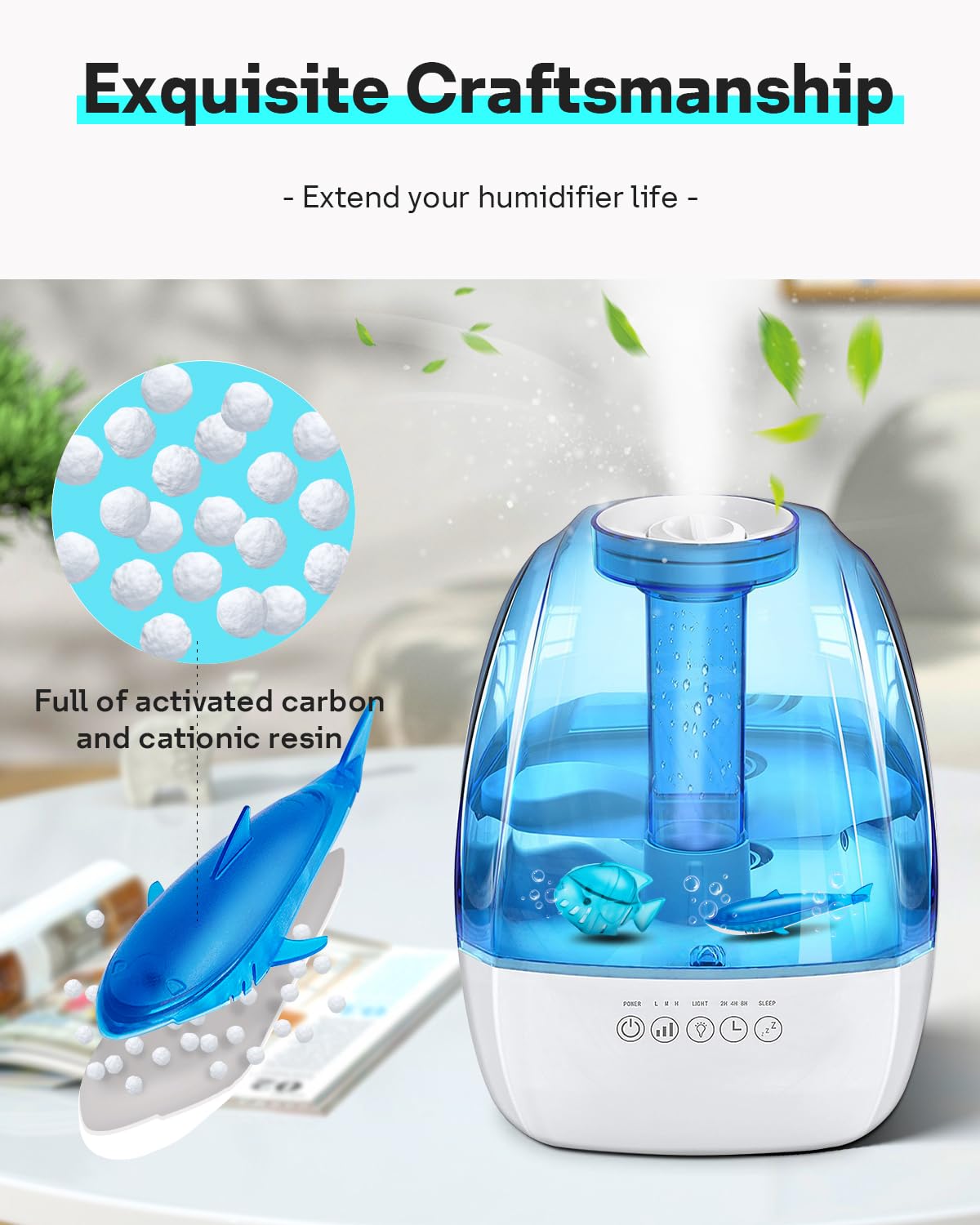 Float: The humidifier cleaning shark & fish floating on the water while keeping the humidifier clean and fresh. It contains no harsh chemicals and works in all humidifier