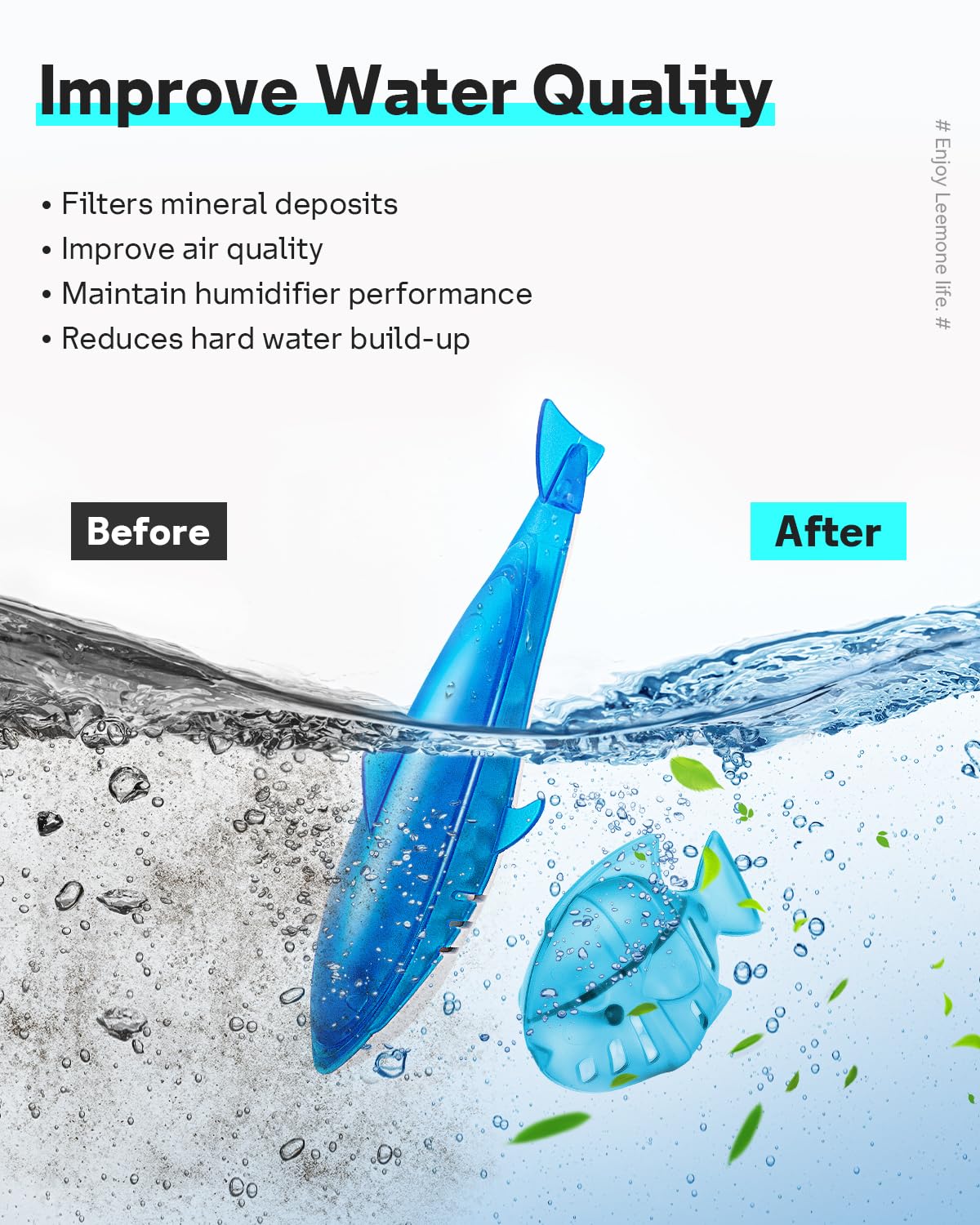 Remove Odor: The Leemone humidifier cleaning shark & fish remove up to 99% odor causing slimy substance and unsightly substance. One Cleaning Shark or Fish is effctive for up to two gallons of tank capacity