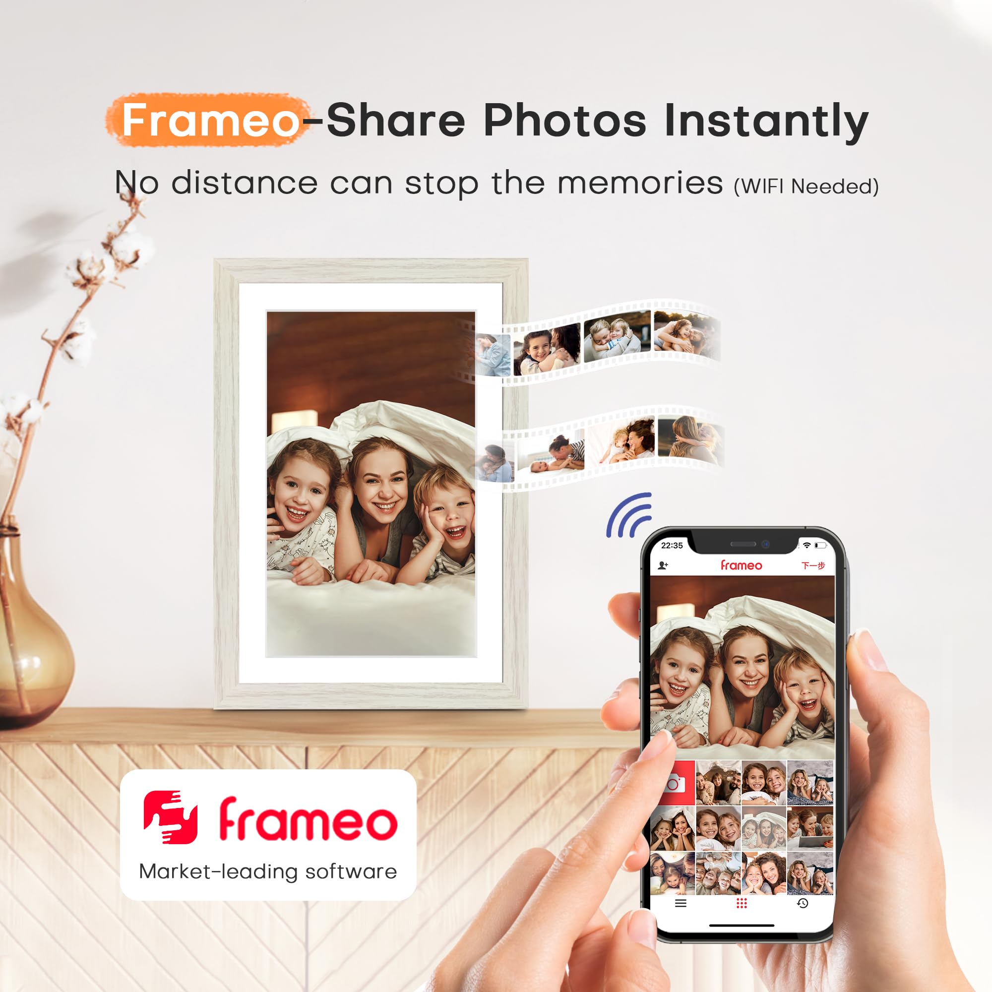 Official Frameo APP partner; As an official Frameo APP partner, we bring you the most reliable and time-tested digital photo frame APP available. With a history of unmatched reliability, Frameo supports downloads, ensuring you experience seamless stability without worrying about app system glitches. Partnered closely with Frameo, we keep optimizing our frameo digital frame wifi to meet your evolving needs. We are adding cool and innovative features to Frameo all the time with help of our users