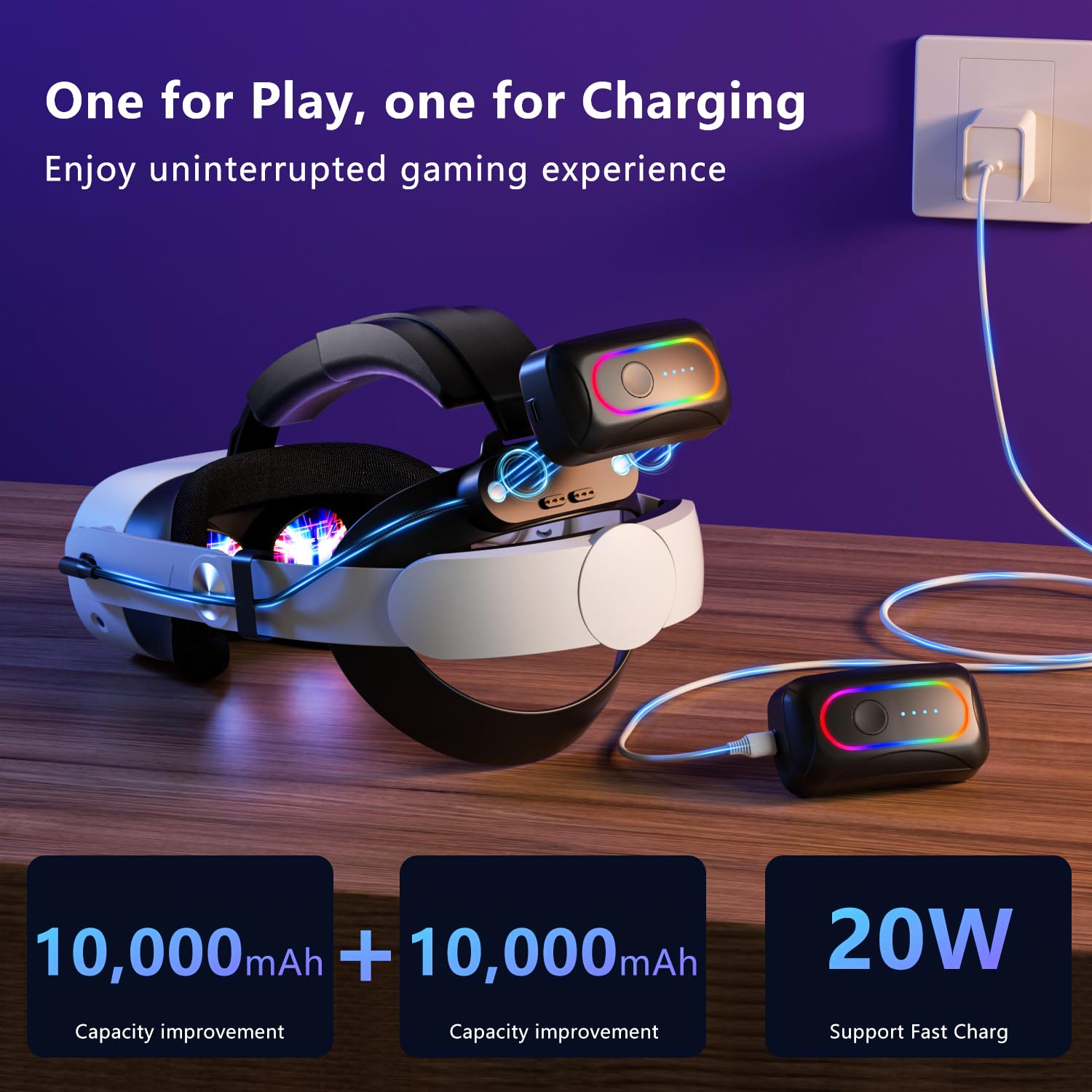🔁【10000mAh +10000mAh Rechargeable Magnetic Batteries】----Dual Magnetic Battery Head Strap ,very easy to replace, one for playing games and the other for charging. Each battery Extend 2-4 hours of playtime. allowing the game to continue uninterrupted and enhancing the gaming experience